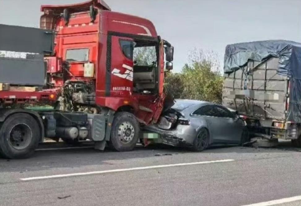 智界S7惨遭两个大大的货车前后夹击,也不知道这司机怎么开的,怎么能在两大货车之间行驶呢。