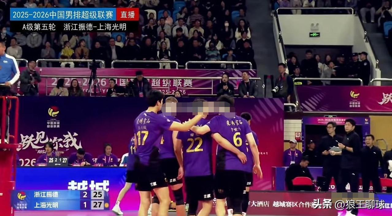 【浙江男排五局力克上海夺联赛第三胜】2025-2026中国男排超级联赛常规赛A级第五轮,浙江振德男排主场鏖战五局3-2(25-20 18-25 26-24 25-27 15-11)力克上海光明男排,浙江男排夺得联赛第三场胜利,卫冕冠军上海男排两连败。 卫冕冠军上海男排此役关键分把握不足、失误控制欠佳,成为两连败的核心症结。上海男排在鏖战五局的焦点战中暴露三方面问题: 关键分稳定性差:决胜局11分后连续失误崩盘(15-11);第四局虽追至27-25扳回,但多次局点机会未把握,反映关键球处理能力下滑。 攻防效率失衡:全队进攻成功率低于浙江,尤其拦网未能有效限制浙江主攻余翔等年轻球员的冲击;胡朕卓虽砍23分但独木难支,整体配合流畅度不足。 心态波动明显:作为卫冕冠军,在客场逆风球时韧性不足,对比前一轮客胜天津的逆转表现,此役抗压能力显著下降。 上海队两连败揭示其状态调整与细节把控需尽快改善。