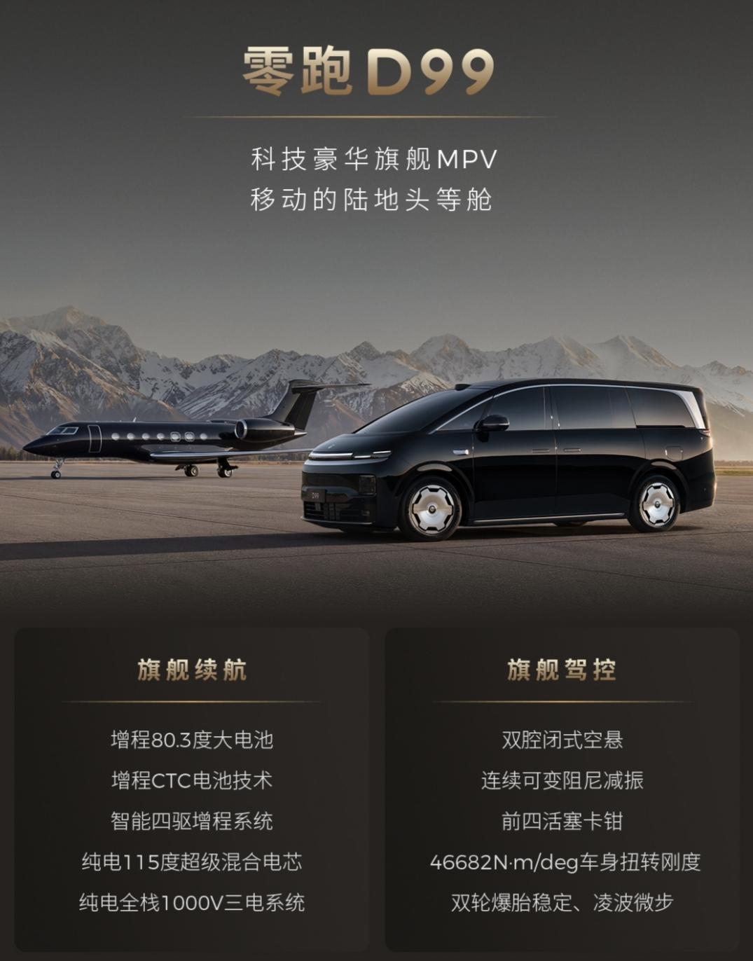 地表最强的MPV,零跑D99,比零跑D19还猛。 零跑D99来了,车长超5米,车宽近2米,轴距超3米1,配置和零跑D19一样,增程80.3度大电池包,纯电115度超大电池包。 MPV市场容量有限,魏牌高山月销破万,刚刚夺得了MPV的销量冠军,岚图梦想家和丰田赛那销量不错,排名第二和第三。 以零跑价格屠夫的作风,零跑D99的起步价,应该不高于25万,这下MPV市场热闹了。 没有谁能够逃过这场大洗牌,走下坡路的别克GL8和腾势D9更是如此。 MPV市场,将迎来一场血雨腥风。