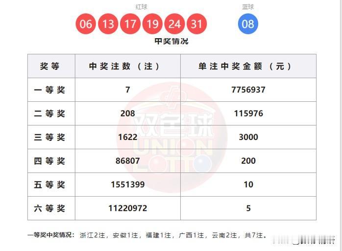 七注头奖闪耀全国5省,25150期双色球再度迎来惊喜,全国共诞生 7注一等奖,单注奖金高达 775万元。其中,浙江与云南各摘得2注,安徽、福建、广西则分别揽获1注。 二等奖亦表现不俗,共开出 208注,单注奖金超过 11万元。而最令人称奇的是,末等奖竟爆出 1122万余注,足见广大彩民对蓝球 08 的青睐与信心。在此,向所有幸运儿致以诚挚祝贺! 目前,奖池已缓缓回升至 26.73亿元。本年度仅剩最后一期,可谓时间紧、任务重——若想一举“掏空”奖池,需中出 500注一等奖。愿每一位怀揣梦想的彩民,都能在最后的冲刺中收获属于自己的幸运与喜悦!