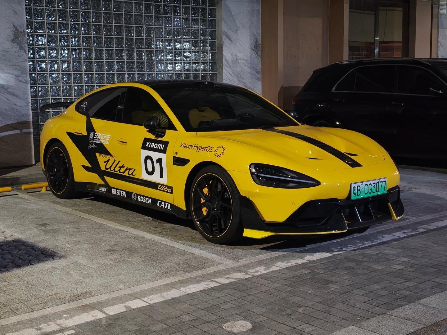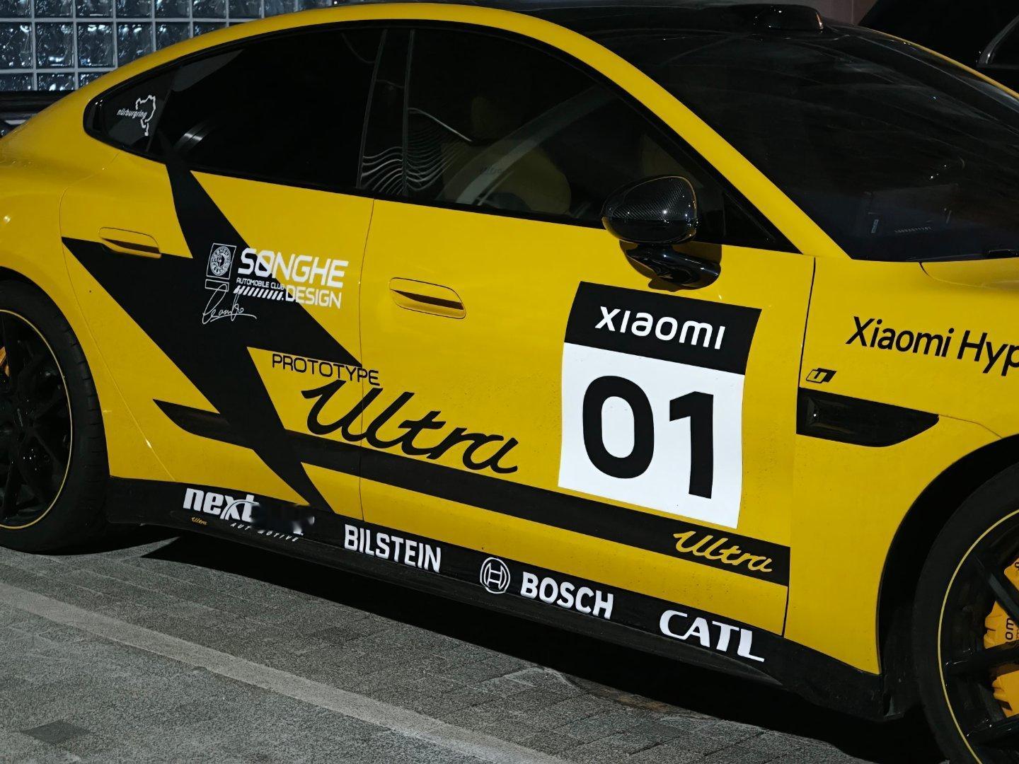 这个小米Su 7 ultra的挖孔涂装不错呀。有点纽北原型车那个味道了。