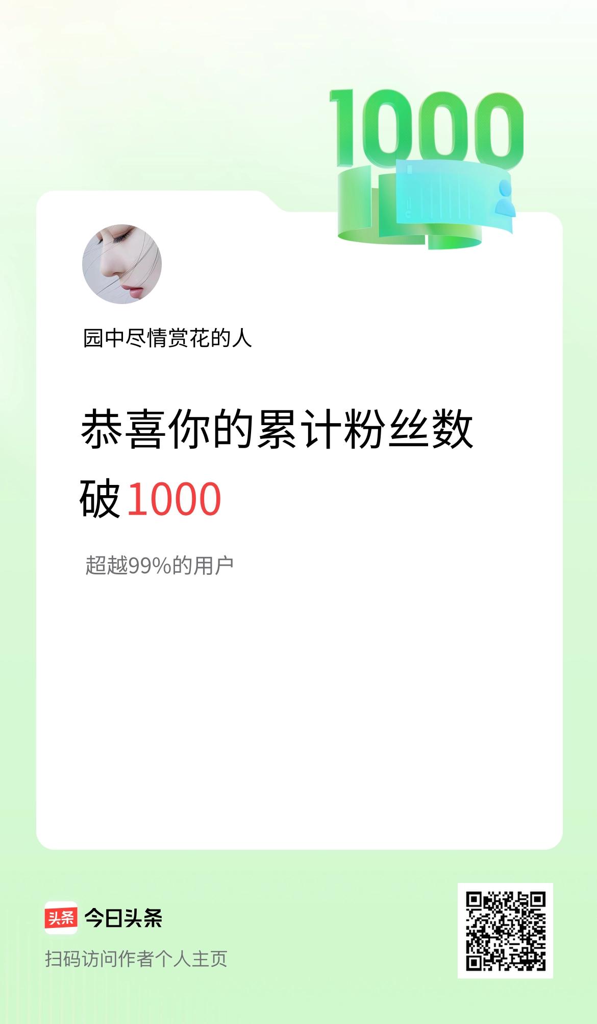 我在头条累计粉丝数破1000啦!