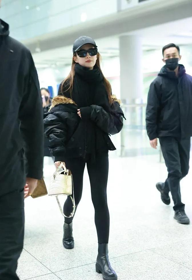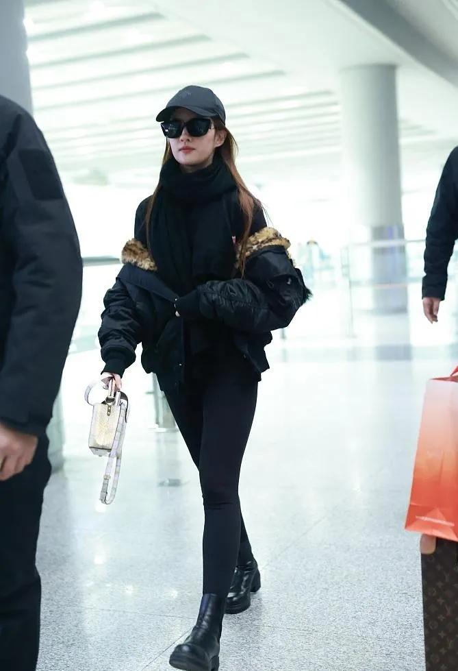 行走的衣架子说的就是刘亦菲吧,简单的全黑私服都这么有范儿!