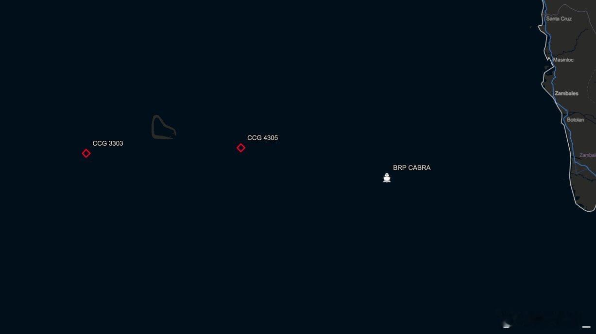 黄岩岛今天态势,菲律宾海警4409艇在吕宋岛与黄岩岛之间海域活动,靠近吕宋岛。中国海警4305舰和3303舰在黄岩岛东西两侧值守。南海态势
