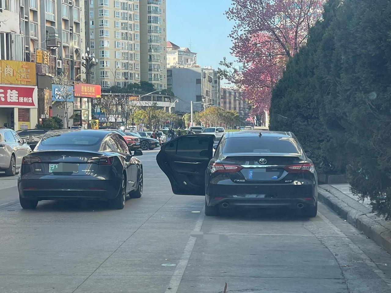 这车在干什么?十几分钟一直这样,不危险吗? 路过的司机怎么想?这辆车的司机怎么想?不怕危险吗?
