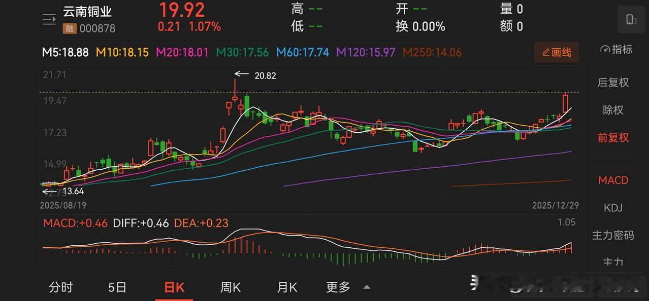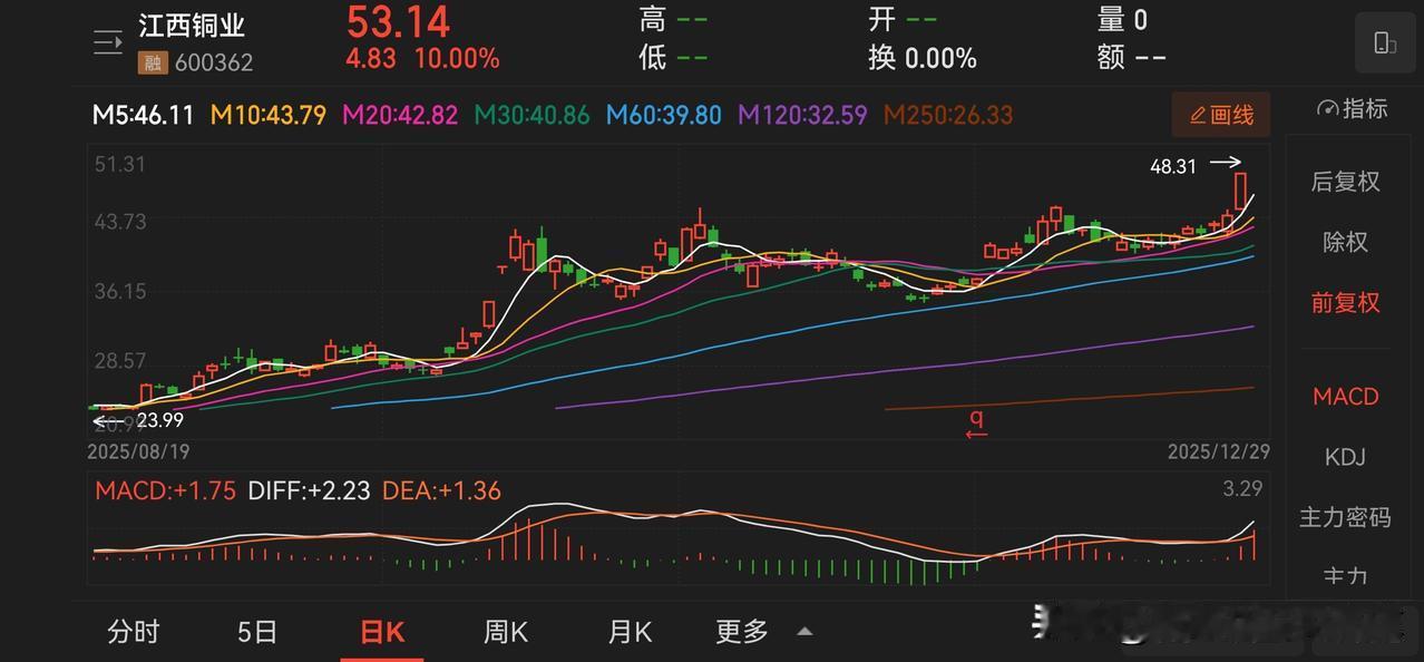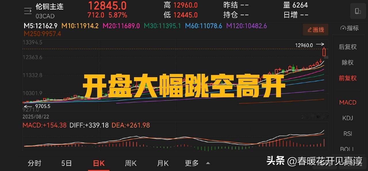 伦敦铜和沪铜开盘大幅跳空高开,估计会创下单日涨幅记录,江西铜业已经预涨停,其他农业股今天应该会有一个抢筹。 所以最近一直说,那些说铜上涨是阴谋论的,嗯,会耽误大家赚钱,陈江挺在《炒股的智慧》一本书中早就说过,跟着大盘走,不要跟着朋友走。消息是跟着价格走,而不是价格跟着消息走。 云南铜业、铜陵有色、北方铜业、西部矿业啊,这些铜有关的股票,还有铝代铜概念的铝相关的股票,大家自己去挑一挑吧。 前两天分享了神火股份、云铝股份、中国铝业有朋友问,选哪一个?这种事要自己干,因为你自己选哪一个估计也都会后悔,这种事儿我不会帮你背锅的[思考]