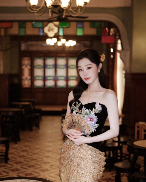宋轶的美商真的一直在线!抹胸刺绣裙勾勒出优美线条,金扇点缀更显格调,东方美感被她演绎得恰到好处,让人移不开眼。