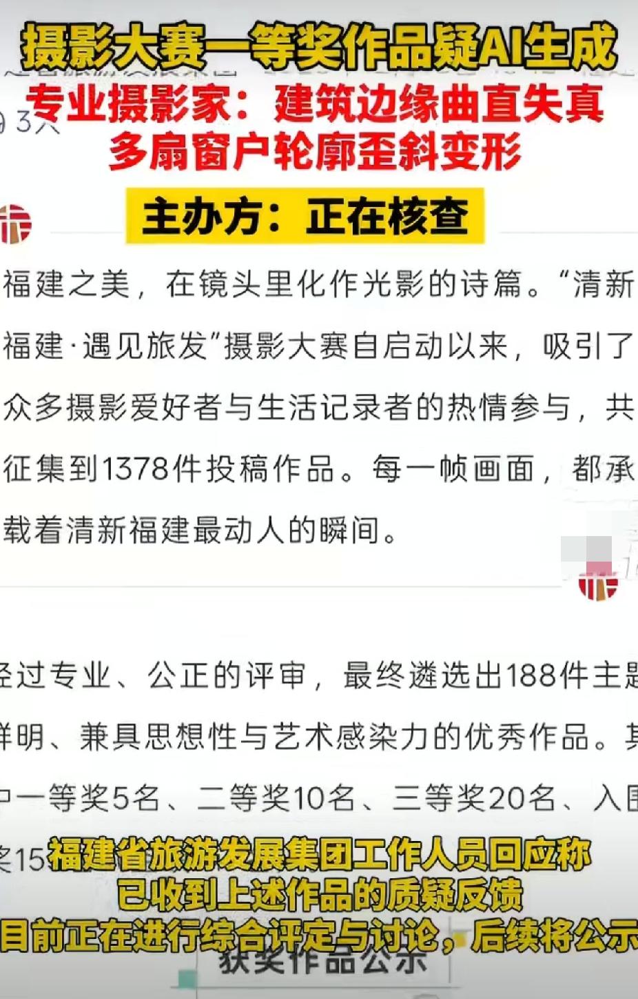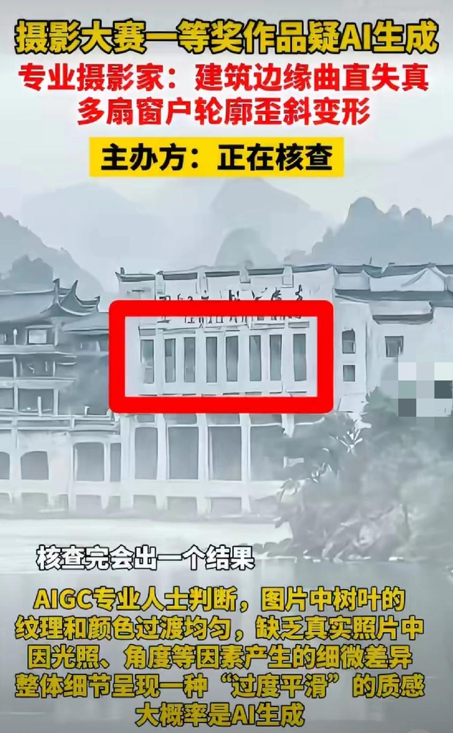 笑不活!摄影大赛一等奖疑是AI生成?这些破绽太明显了😄 家人们最近刷到福建那个摄影大赛的瓜没?主办方明确说禁止AI作品参赛,结果一等奖《湖秋雾影》直接被网友和专业人士集体“打假”,这剧情也太反转了吧! 咱先看看这AI露的破绽,简直是“自报家门”:建筑边缘歪歪扭扭,窗户轮廓没一个正的,墙上六个字看着清晰,愣是没人认得出;还有树叶纹理,平滑得像磨了一百层皮,完全没有真实照片里光照变化的细微差异。合着AI生成时光顾着好看,把“细节决定成败”忘到九霄云外了? 最有意思的是,网友质疑后,主办方说正在核查,可问起评委组成,却只敢说“不便透露”。这波操作让不少摄影爱好者吐槽:“我们扛着相机爬山涉水拍半天,结果可能不如人家敲几句提示词?” 其实分辨AI图片有小技巧:看细节衔接处、看光影逻辑、看文字清晰度,那些看着完美却透着怪异的,大概率是AI的“杰作”。现在就等主办方的最终结果了,到底是误会还是真有猫腻? 你觉得这作品是AI生成的吗?你拍过哪些引以为傲的实景照片?来评论区晒图分享一下 AI生成图片鉴别 摄影大赛争议 清新福建文旅 原创vsAI