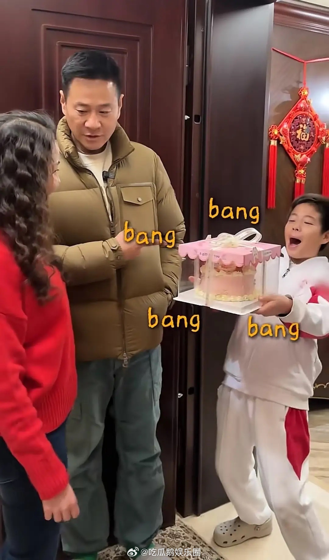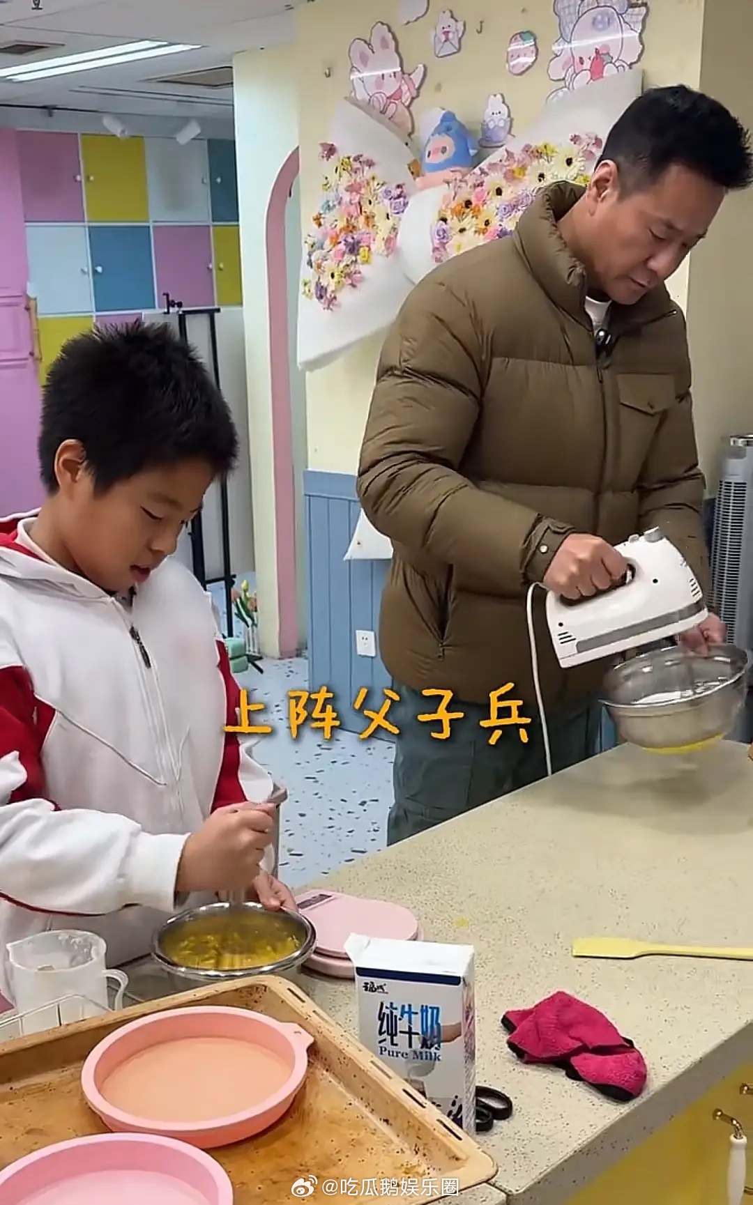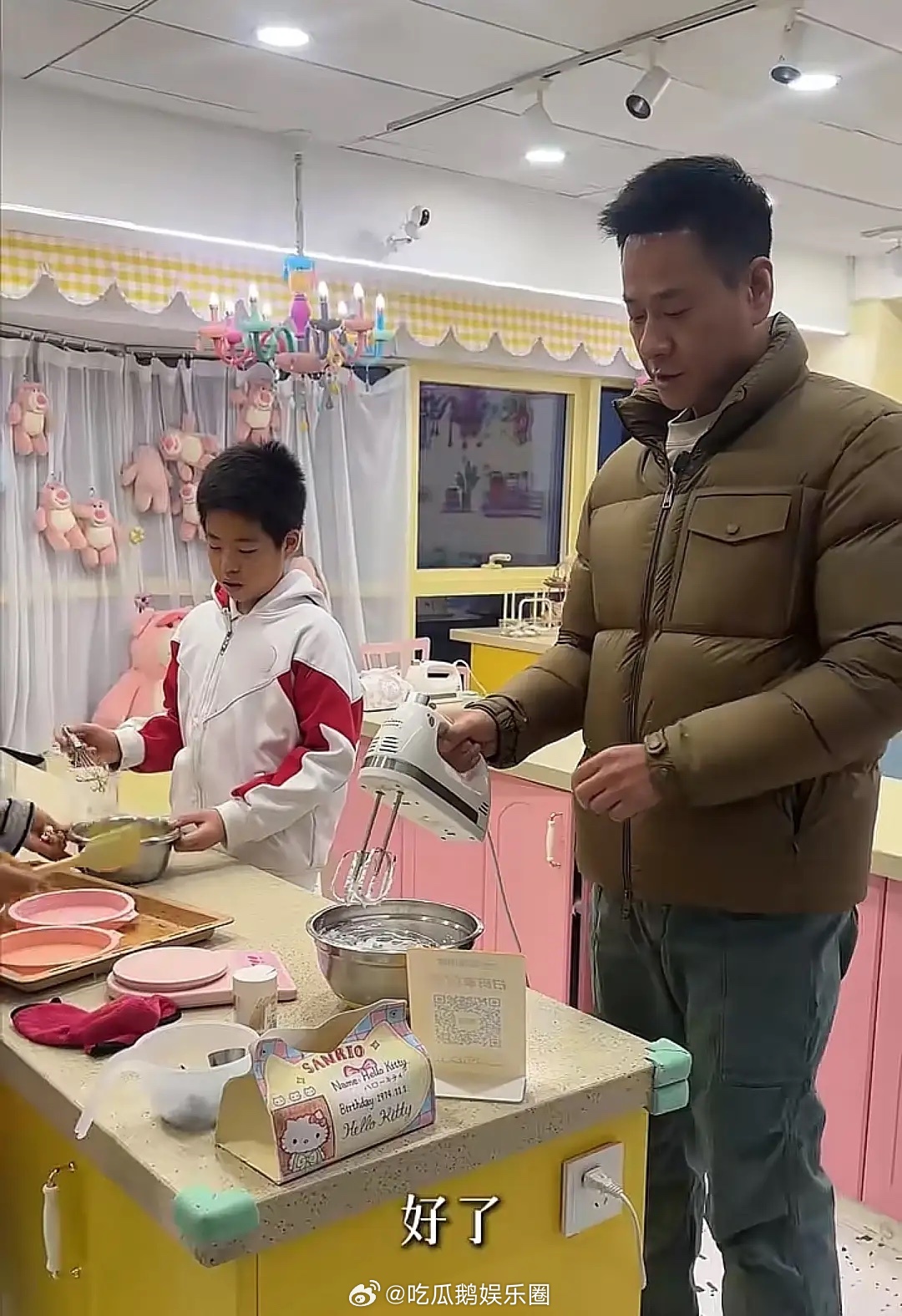 连奕名老婆生日,他和儿子亲手做蛋糕,杨若兮46岁素颜脸肿还嘴歪!