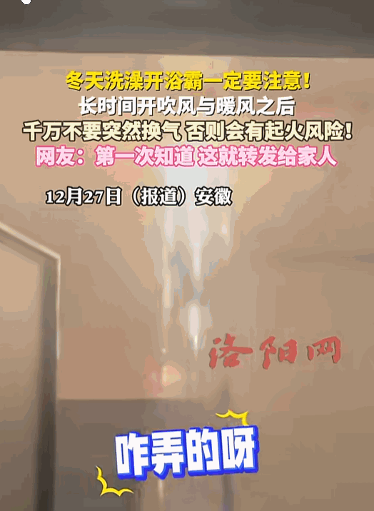 “悲剧还是发生了!”近日,安徽,一女子刚洗完澡,就把浴霸的“暖风”切换成了“换气”,结果还没出卫生间,浴霸就传来“砰”的一声闷响,随后火花如流星般飘落!吓得女子拔腿就跑。网友:洗澡的时候不是全都开着吗? 安徽,一女子刚结束沐浴,用毛巾擦干头发和身体,顺手把湿漉漉的浴巾搭在一旁的置物架上,准备推开卫生间的门回到卧室。 想起浴室内闷着的热气和水汽,她抬眼看向头顶的浴霸控制面板,指尖轻轻一点,将原本亮着的“暖风”按键切换到了“换气”模式——这是她每次洗完澡的习惯,总想着把浴室里的潮气彻底排干净。 可就在按键切换的瞬间,还没等她收回手,头顶的浴霸突然发出一声沉闷的“砰”响,这声音不像金属碰撞,反倒带着点沉闷的爆破感,在狭小的卫生间里格外刺耳。 紧接着,几道细碎的火花从浴霸的缝隙里窜了出来,像小火星一样往下飘落,还伴随着一股淡淡的焦糊味,混杂着浴室里的水汽扑面而来。 突如其来的变故让女士瞬间僵住,下一秒便被恐惧攥住,什么都顾不上想,拔腿就往门外冲,直到跑出卫生间、背靠在客厅的墙壁上,才敢大口喘气。 万幸的是,她撤离及时,没有被掉落的火花烫伤,也没遇到后续的漏电风险。 但这短短几十秒的惊魂经历,被她分享到网上后,很快就引发了大量关注,不少网友都表示“隔着屏幕都觉得害怕”。 有网友坦言自身存在“洗澡时浴霸全功能常开”的惯性,疑惑“多模式同时运行难道不是更方便?”,此问道出不少人的日常操作误区。 也有网友结合过往见闻直言“曾见过浴霸异响却未在意”,懊悔于此前的疏忽大意。 这次安徽的浴霸事件,其实是给所有人提了个醒,冬天家里用电安全可不能大意,这背后也能看出来,不少人对电器安全知识了解得不够,使用习惯也不好。 现在市场上有不少没牌子、小作坊生产的浴霸,这些产品没有国家强制的安全认证,做工粗糙,本身就是很大的安全隐患。 而且大多数人平时根本不重视浴霸的检查和维护,很少有人会定期看看线路有没有磨损、零件有没有老化,甚至有些时候浴霸已经出现了异响、灯光忽明忽暗的情况,也没人当回事,直到出了问题才后悔。 想要避免这类风险,得从买、用、修这三个环节都做好,买的时候可别贪便宜,一定要选正规品牌、有安全认证的产品,还要看看有没有合格证和安全说明书,确保质量没问题。 用的时候,别频繁切换模式,也别长时间把所有模式都开着,洗澡的时候注意别让水或者沐浴露直接喷到浴霸上,用完后最好及时关掉电源,甚至拔掉插头,减少潮湿环境下漏电的风险。 家里的安全没小事,尤其是卫生间这种潮湿环境的用电安全,关系到一家人的平安。 这次安徽的浴霸事件虽然没造成严重后果,但足够让大家引以为戒,只有丢掉侥幸心理,多了解点安全知识,规范使用电器,才能让浴霸这种方便的电器真正帮到我们,而不是变成藏在家里的安全隐患。 信息来源:洛阳网《冬天洗澡开浴霸一定要注意!》