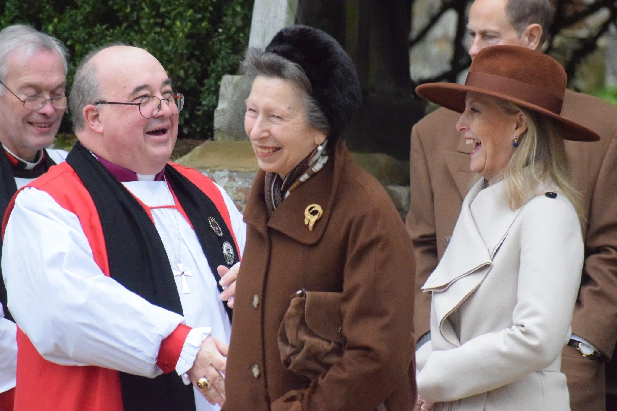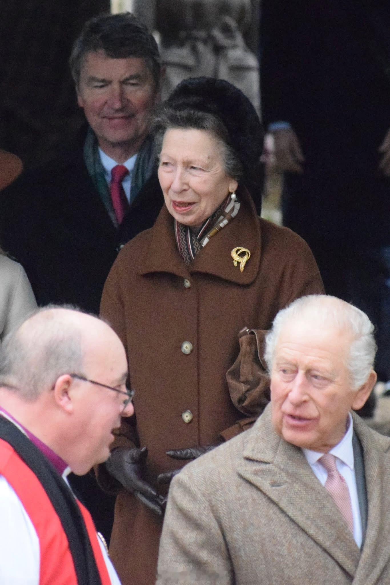 英国王室 2025年12月28日,安妮长公主和蒂莫西劳伦斯爵士在诺福克郡圣玛丽抹大拉教堂参加2025年最后一场教堂礼拜天活动,安妮长公主的儿子彼得菲利普斯和未过门的准儿媳Harriet Sperling也有出席⛪📍蒂莫西劳伦斯爵士连续2️⃣次在教堂礼拜天活动佩戴同一条绿灰色海格罗夫围巾,他有棕灰色款🧣