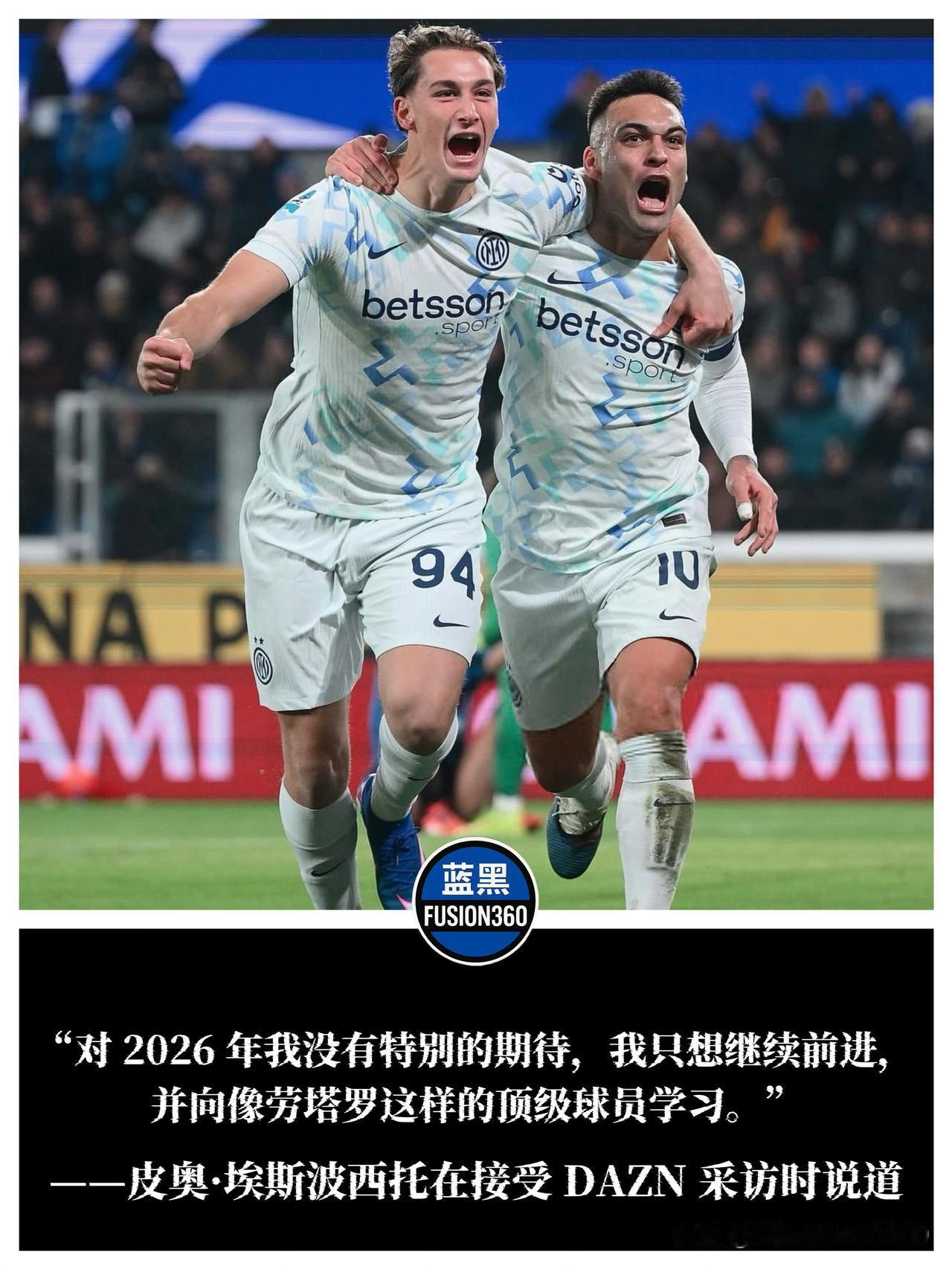 劳塔罗霸气回怼媒体!为了05后天才,真队长必须护犊子 赛后混采区,面对长枪短炮的围堵,身为队长的劳塔罗没有谈论战术,而是直接竖起了一道屏障。这一刻,他不再是那个禁区内的冷血杀手,而是身旁那位05后小将最坚实的“防弹衣”。 赛后采访时,劳塔罗罕见地对媒体展现了强硬态度:“皮奥必须保持冷静,像我们当年那样去犯错。你们(媒体)必须离他远点!” 而被大哥护在身后的皮奥·埃斯波西托则谦逊回应:“我对2026年没有任何奢望,只想向前看,跟劳塔罗这样的冠军学习。” 这就是领袖的担当。在梅阿查这个对失误几乎零容忍的角斗场,劳塔罗深知舆论压力能轻易毁掉一个天才。他主动把所有的聚光灯和压力扛在自己肩上,只为了给年轻人争取一点极其昂贵的“试错权”。 有这样的带头大哥罩着,你觉得皮奥·埃斯波西托能成长为国米的下一个维耶里吗?国际米兰 💙🖤