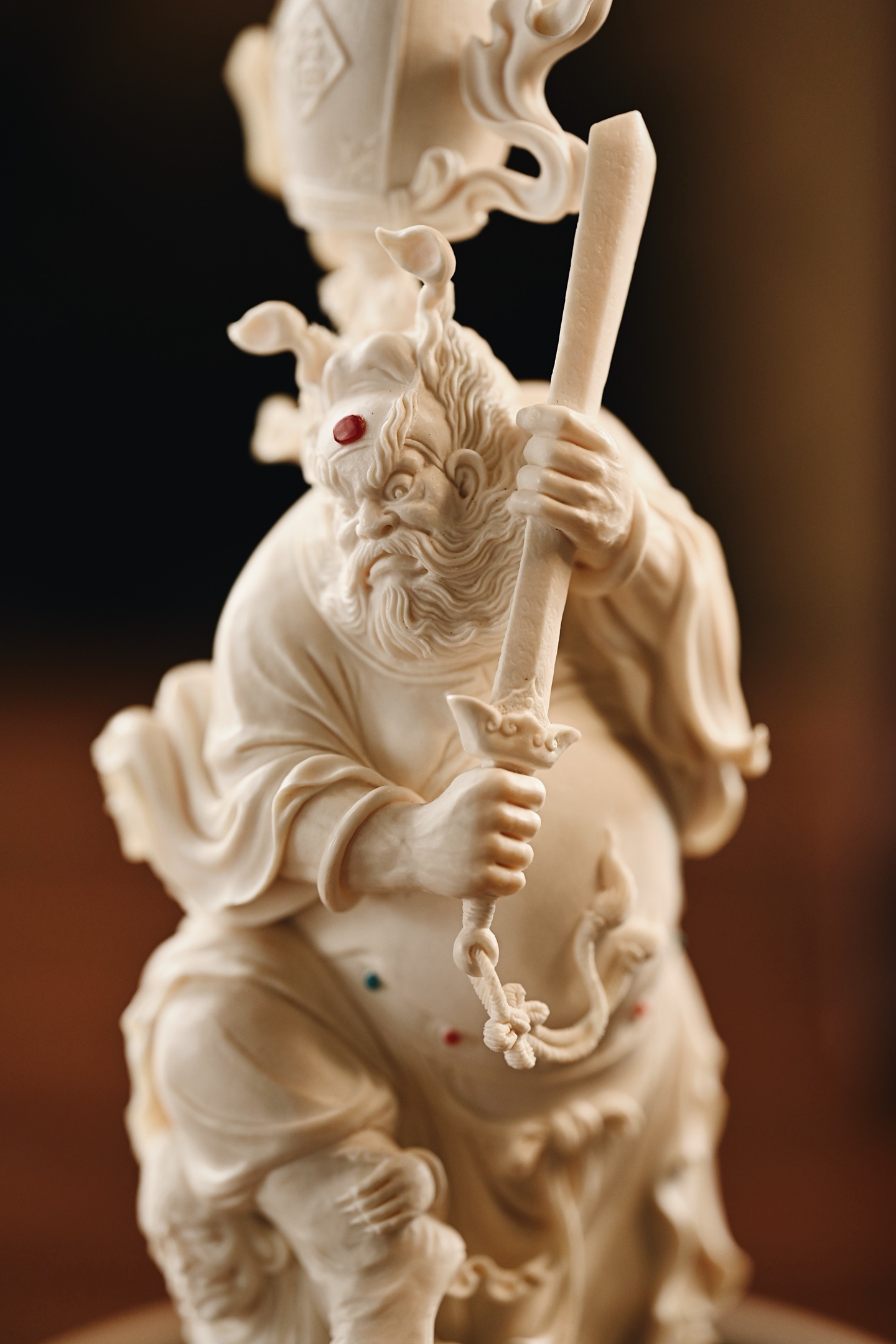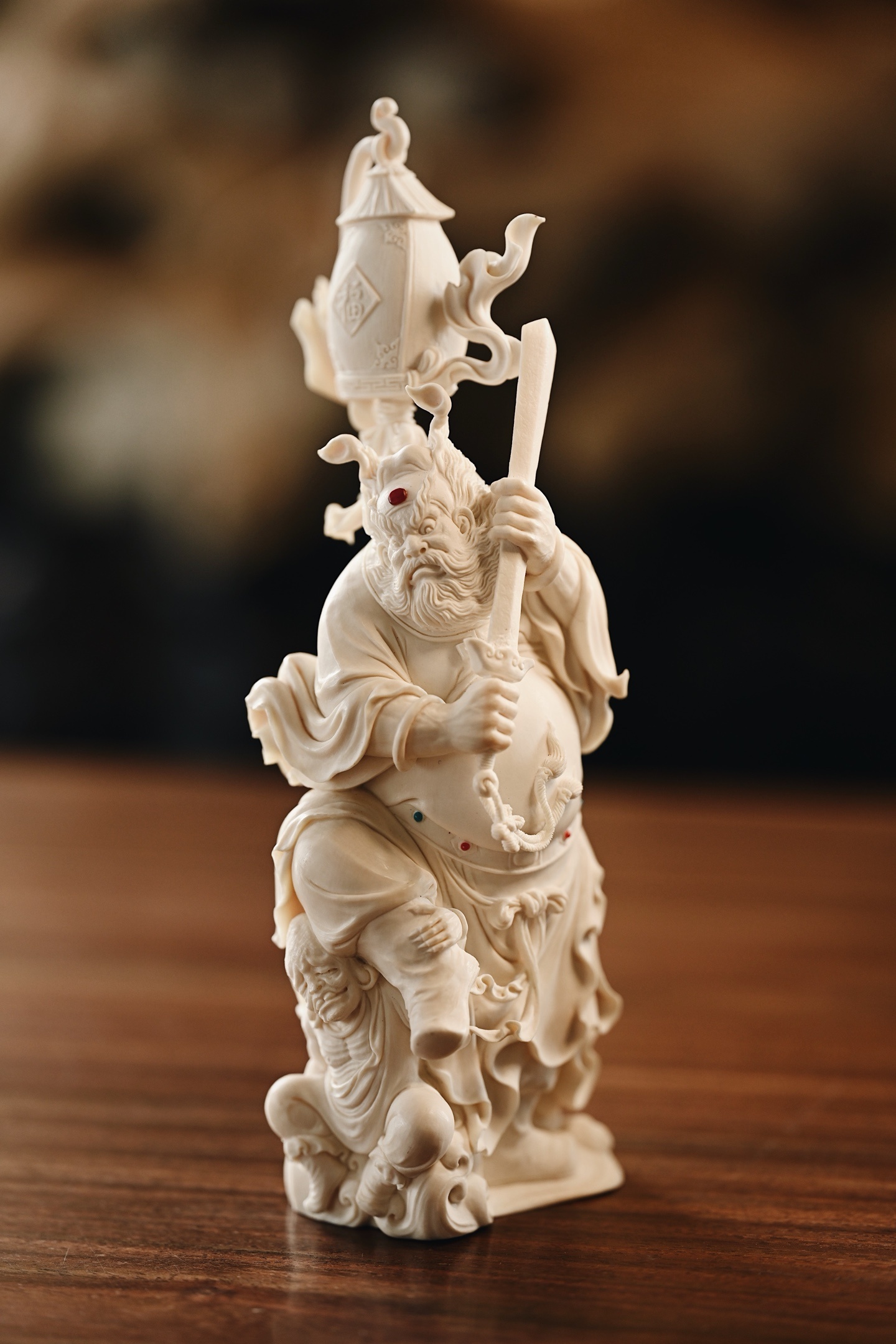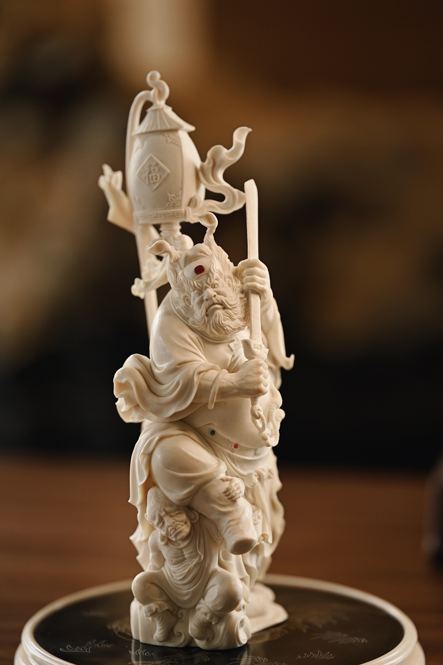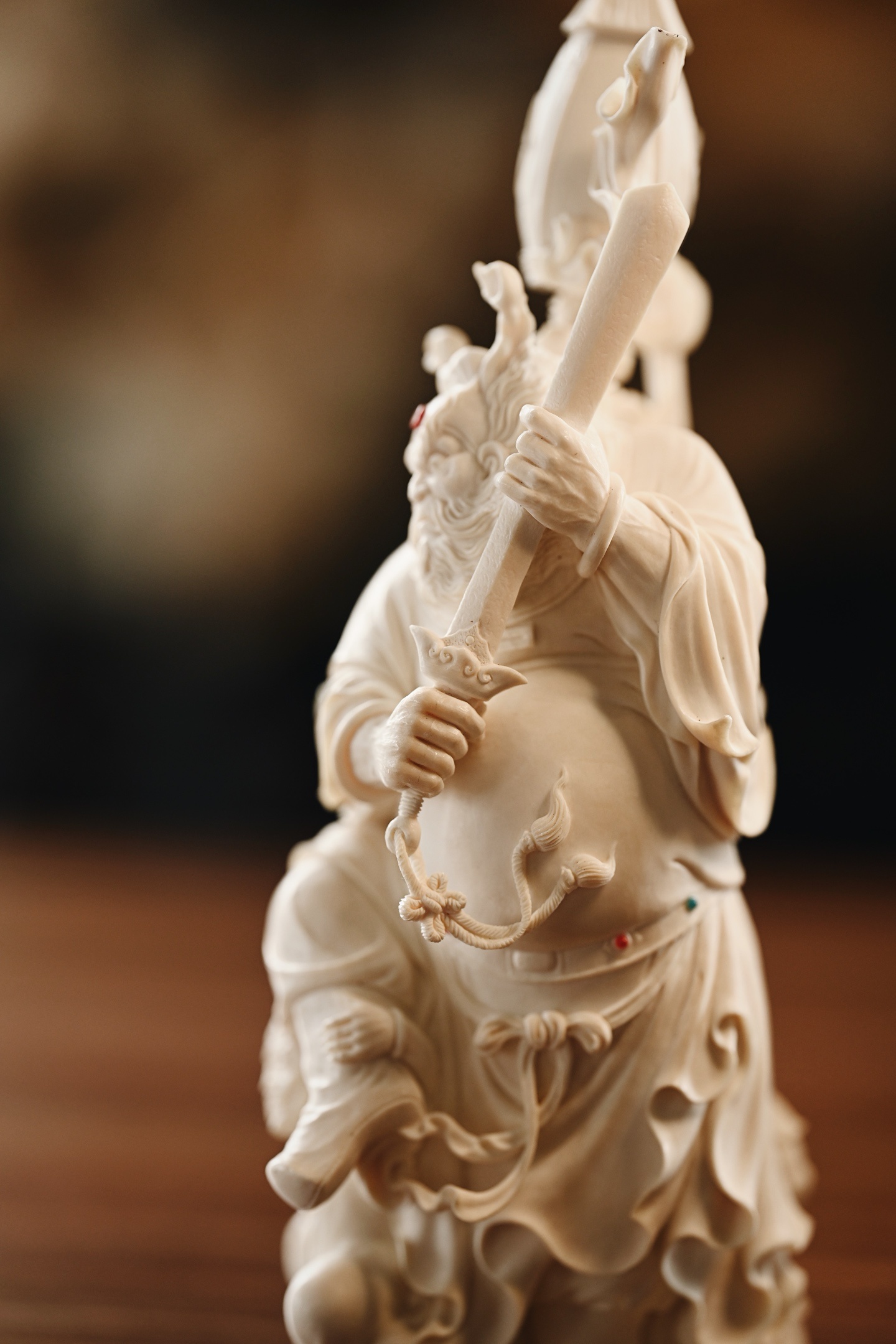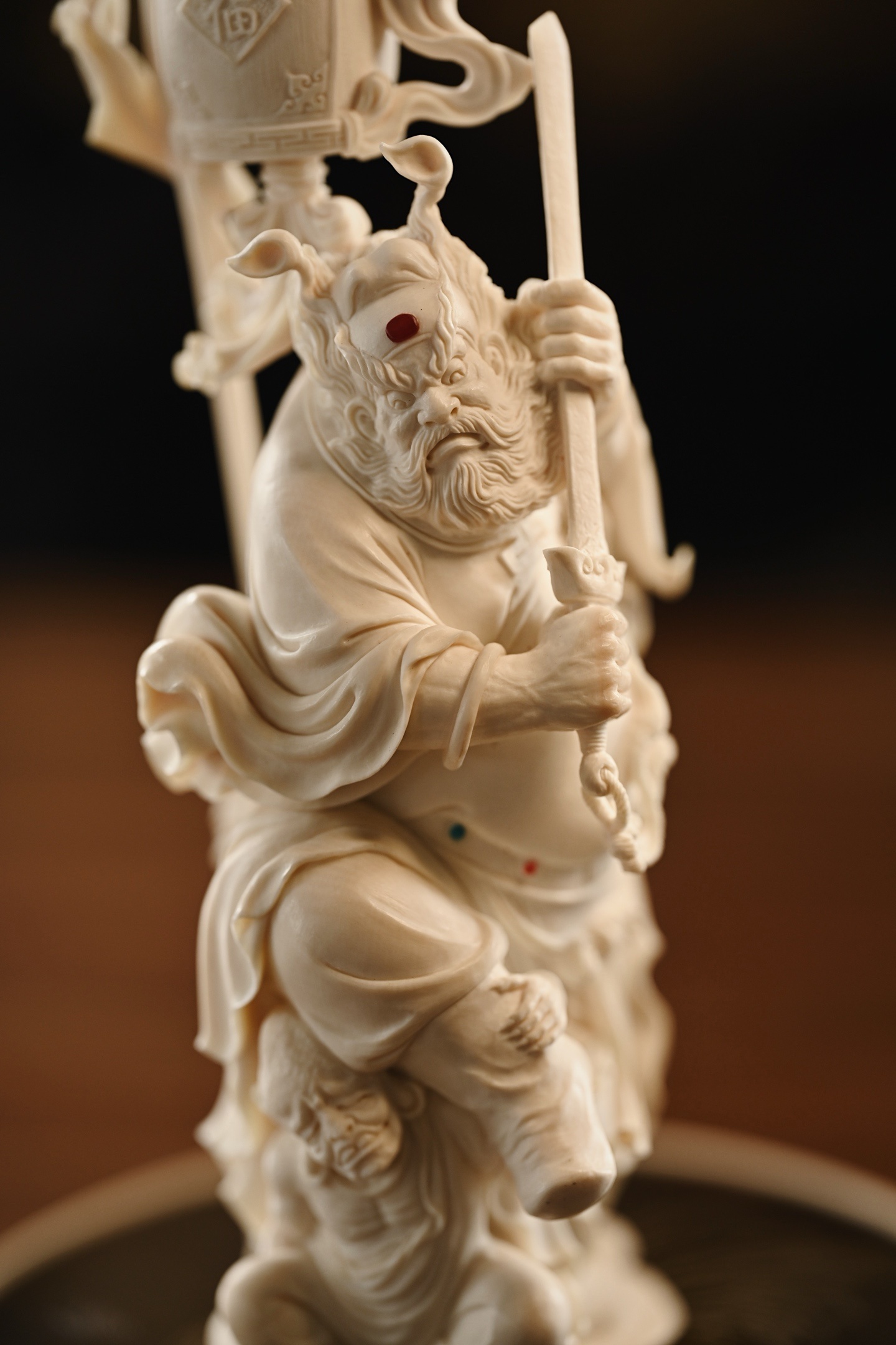 猛犸 | 钟馗赐福雕刻生动细腻,钟馗头戴幞帽,双目圆睁,铁面虬鬓,面目狰狞,形象细腻逼真,栩栩如生。双手持剑,身穿宽衣大袍,神态威武,正气浩然,整体雕琢精湛,气势非凡。6.8*5*17.8cm 306g