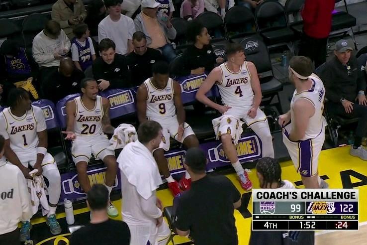 雷迪克路走窄了…… 太子布朗尼成湖人最边缘的人物,湖人主场打爆国王的比赛中:末节早早进入了垃圾时间,雷迪克考虑布朗尼打球都是最后才考虑的,除非大胜或者大败,他父亲老詹24分3篮板5助攻2抢断,打的非常出色,湖人签布朗尼就是卖老詹的面子,但是老詹在湖人的影响力可是巨大的,雷迪克应该考虑适度增加布朗尼的时间,太子最后时刻打了4分钟半,数据栏全部是0,交了白卷,正负值还是-6,这样打下去啥时候才能提高水平?老詹心里肯定着急的,在他退役之前,不说把布朗尼扶正,能有个稳定的板凳轮换就烧高香了! 布朗尼詹姆斯