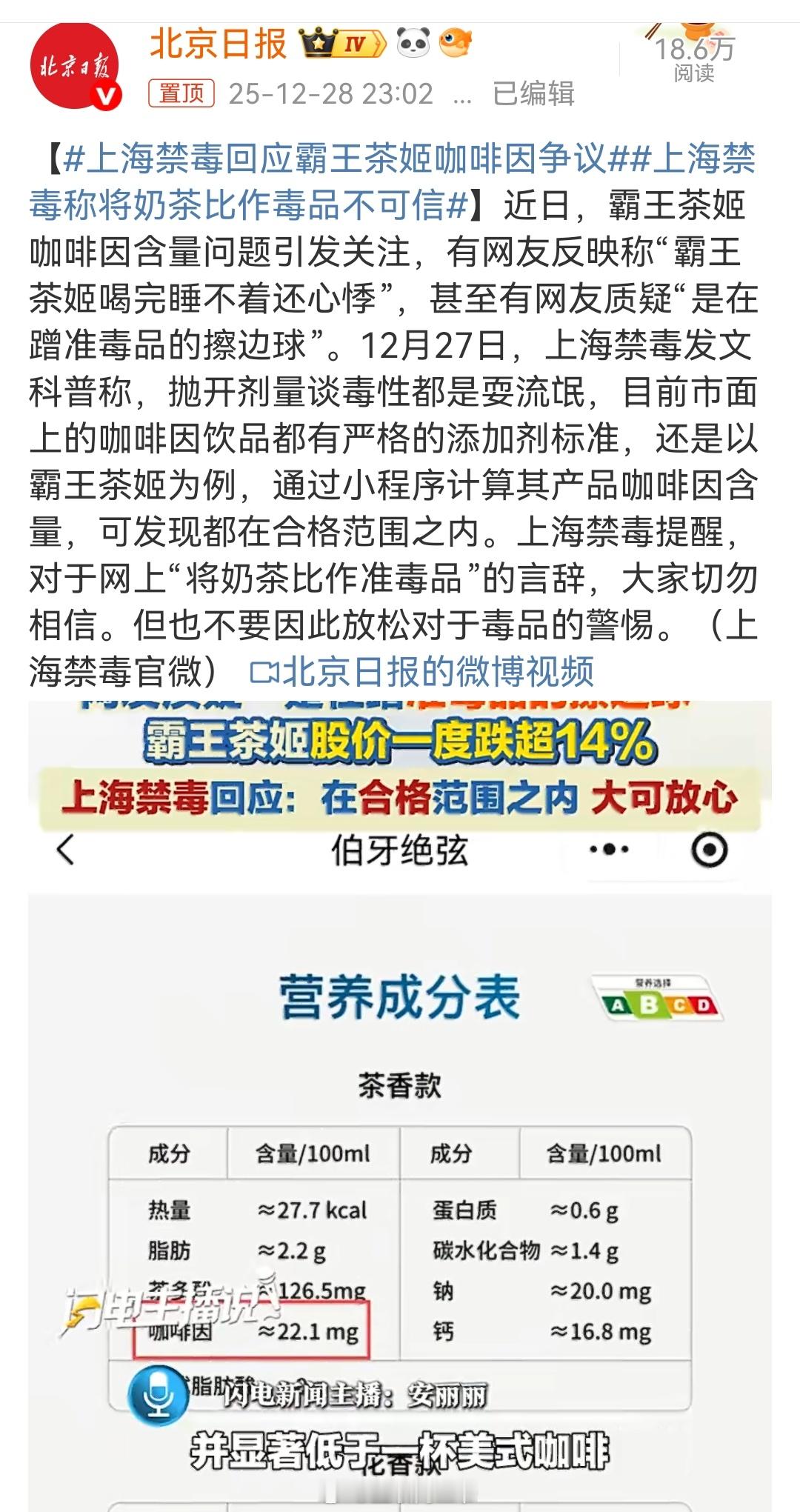 上海禁毒回应霸王茶姬咖啡因争议抛开剂量谈毒性都是耍流氓,上海禁毒也给霸王证明了,网友评论区力挺支持。这种污化中国CHA的自媒体,霸王该起诉起诉吧,别留着过年了
