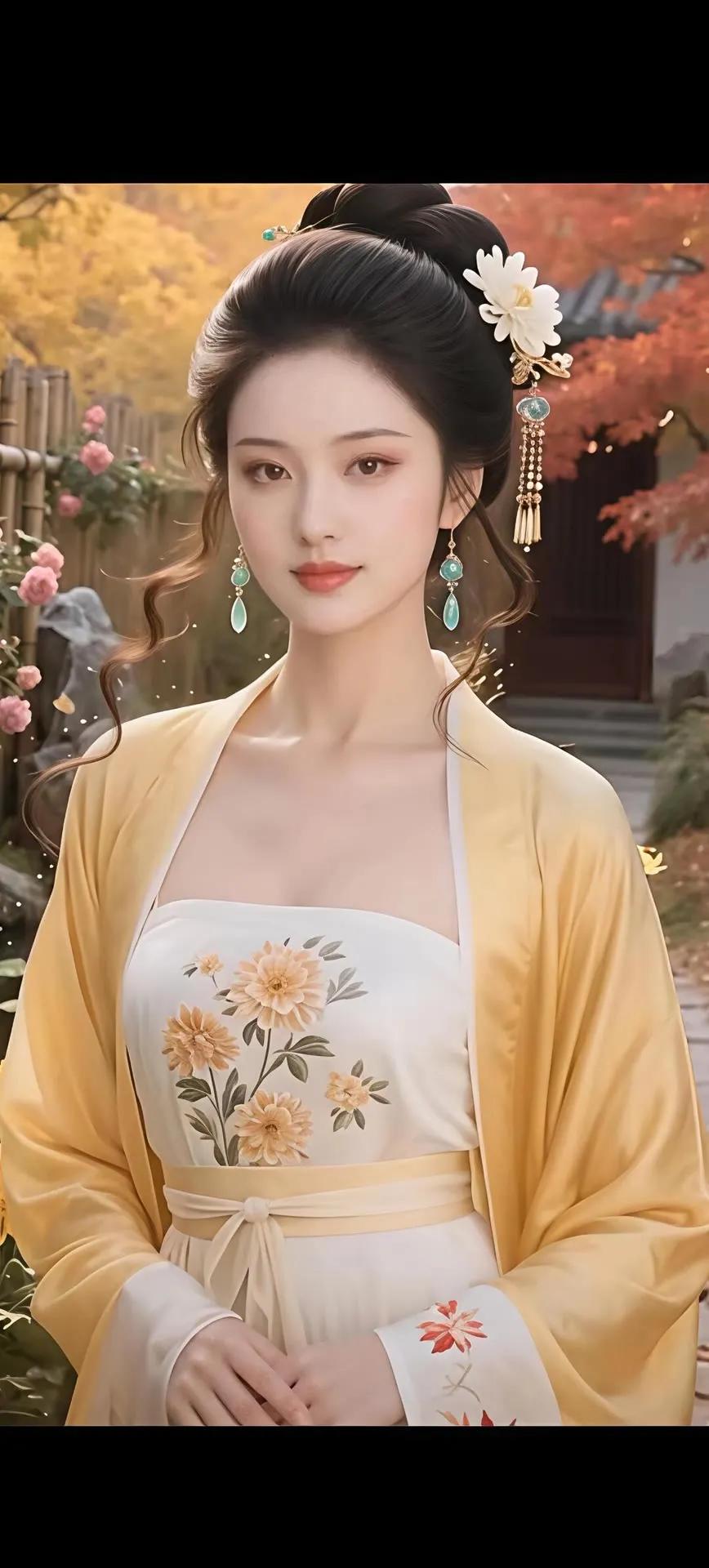 秋日古风美人,花间漫步,韵味悠长。