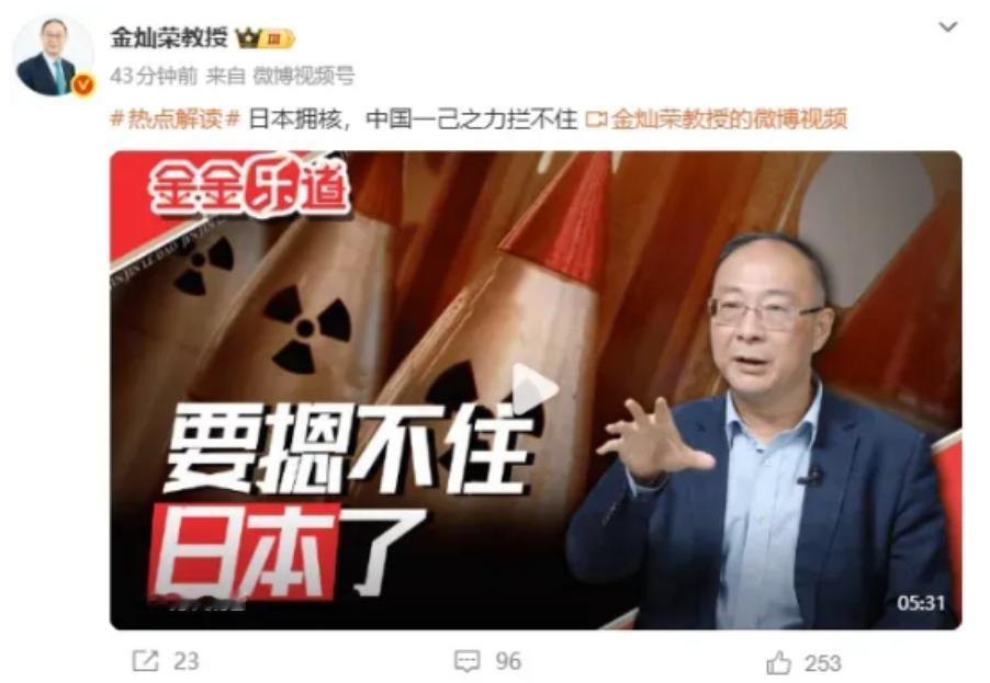 金灿荣教授宣布了: 日本拥核,中国一己之力拦不住!要知道,这话不是什么“营销号”说的大话,而是由国际关系专家金教授给出的分析! 要知道,日本最近一直吵吵着要拥核,而且他们有可以造几千枚核弹的原材料,这就好像是万事俱备,只欠东风了。甚至日本要是真有了“核”,好像也不奇怪,因为当一个小孩说他想拉肚子的时候,那么他很有可能已经拉裤了。 可以说,日本就是想借着中日的紧张关系换取美国核松绑,能否阻止日本“拥核”,美国的态度非常重要。日本偷袭珍珠港之后,美国就一直留了一个心眼,日本当年就几艘军舰都敢偷袭珍珠港,要是有了核弹,那美国也要开始担心了。 况且,无核论是不能有先例的,一旦开了这个口子,那明天谁也想搞点核武器,就要乱套了。 说白了,美国在日本的5万驻军也不是摆设,是一种“支援”,也是一种“监视”。 所以说,中国不能独自拦住日本,那就要找其他国家一起来,找同为二战受害者的俄罗斯和韩国就是很好的选择,相信朝鲜也乐意阻止日本。