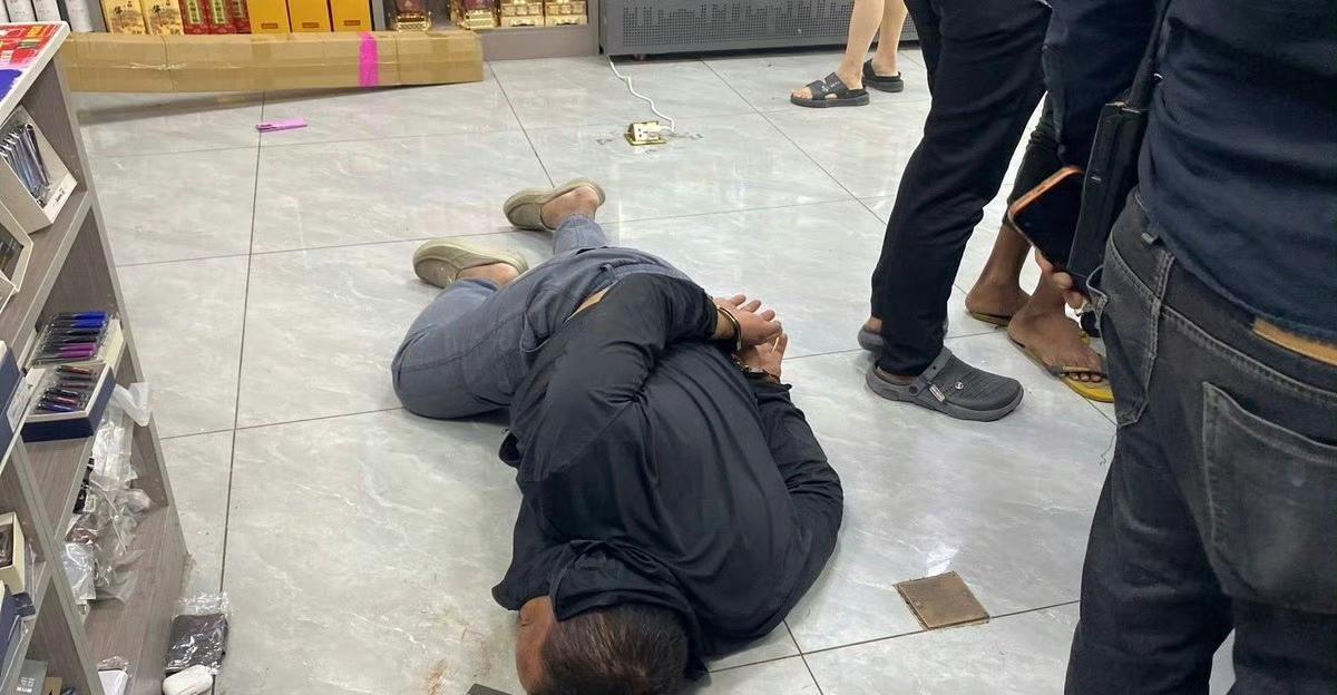事发今天凌晨2点左右,这名中国男子进入金边棉芷区60米路上的一家中国超市后,跟女店主发生争执,情绪激动,将手机摔在地上,随后拔出手枪,开枪恐吓对方,其中一发子弹走火。 所幸当时另一名店员赶来,与女店主一起将男子制服。之后警方接到报警赶到现场,将该男子带到当地警察局进行进一步处理。警方缴获了一支手枪及相关物品。