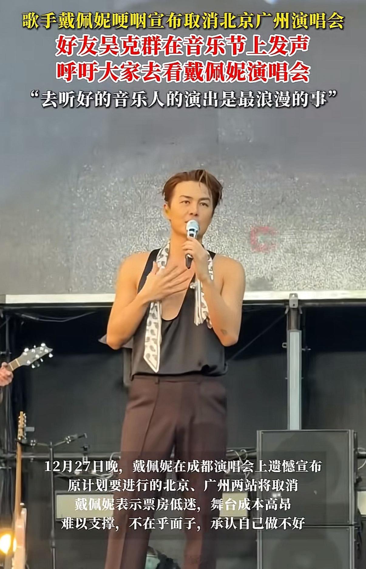 吴克群喊话支持戴佩妮 戴佩妮巡演场次缩减,杭州站成内地终场,吴克群在自己的演出现场喊话大家多多支持她!音乐人的惺惺相惜太美好了,青春里的记忆值得一场奔赴!