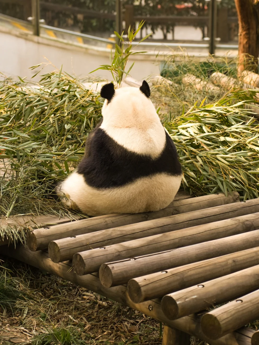 到山顶访大熊猫,看它慢悠悠踱步