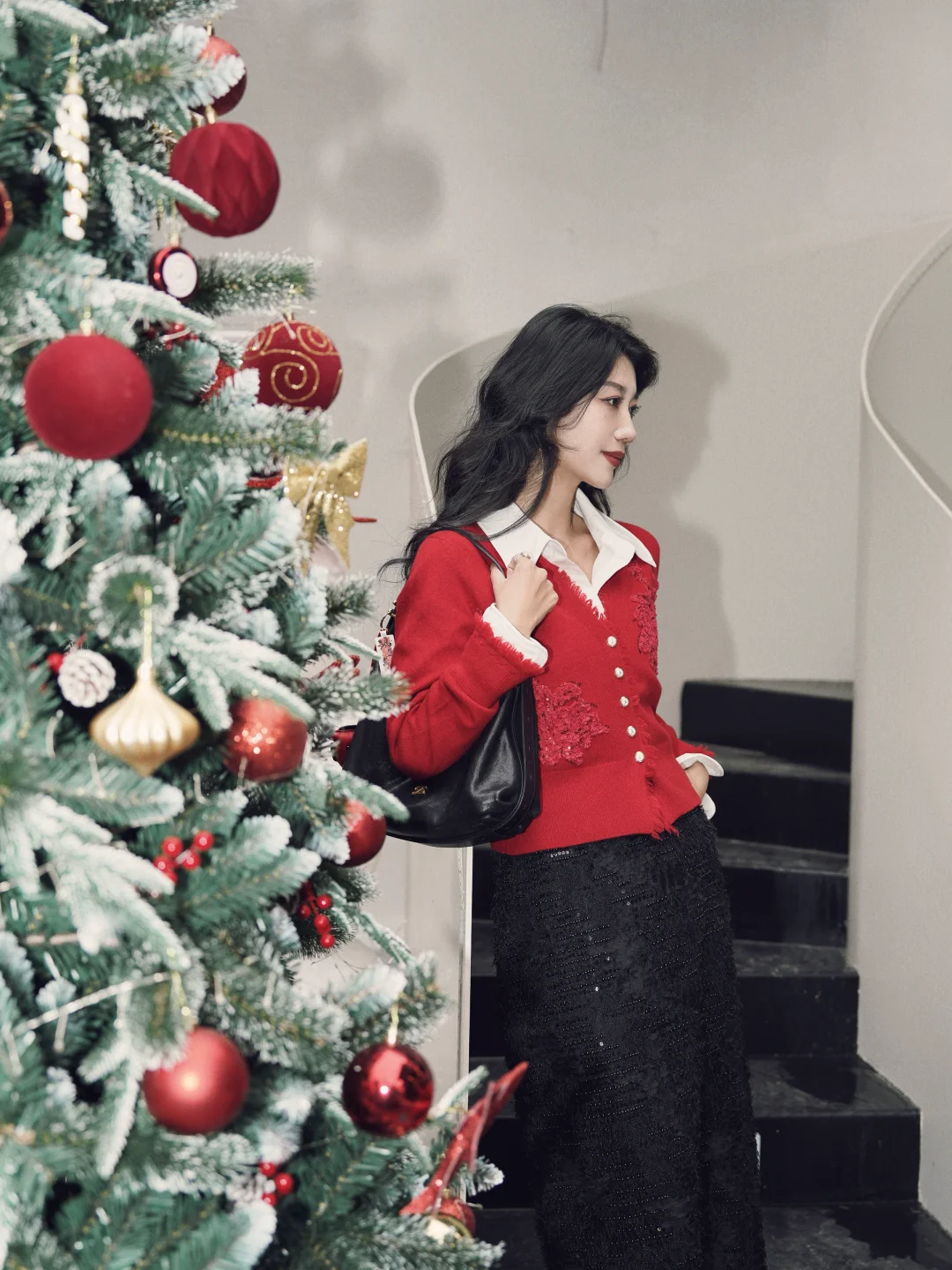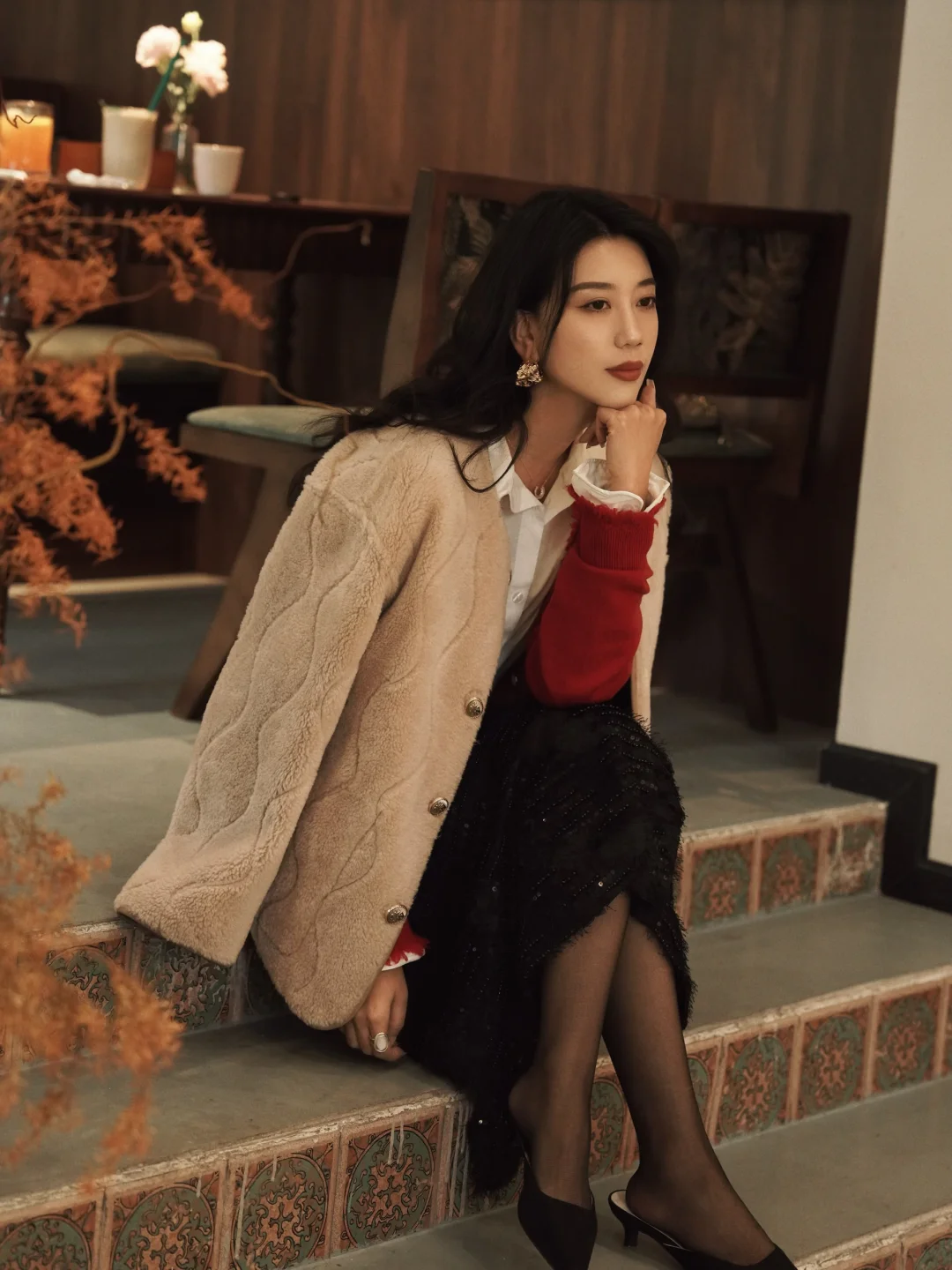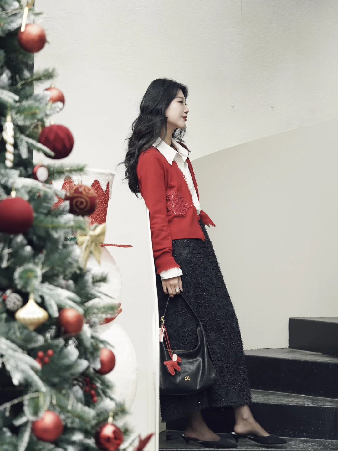 过年穿什么 气质穿搭 新年红 新年穿搭 就要红出圈 红色针织衫 精致的松弛感
