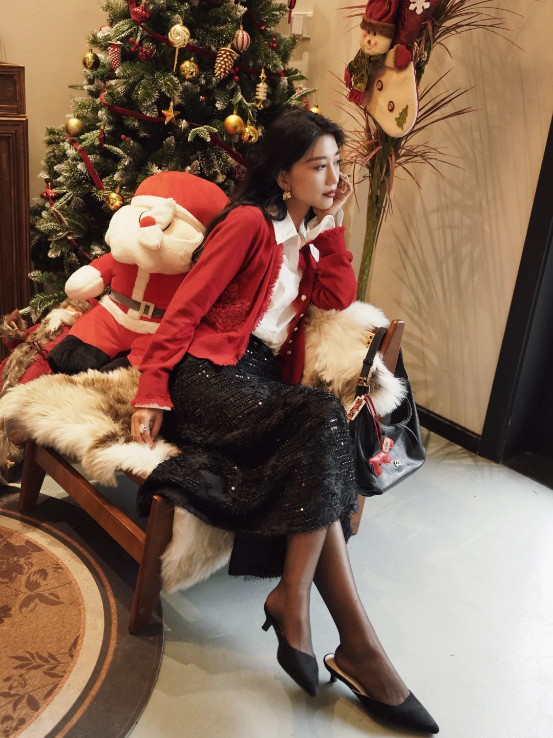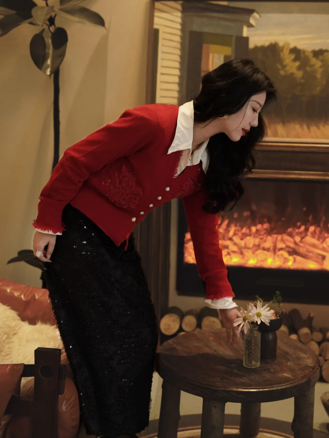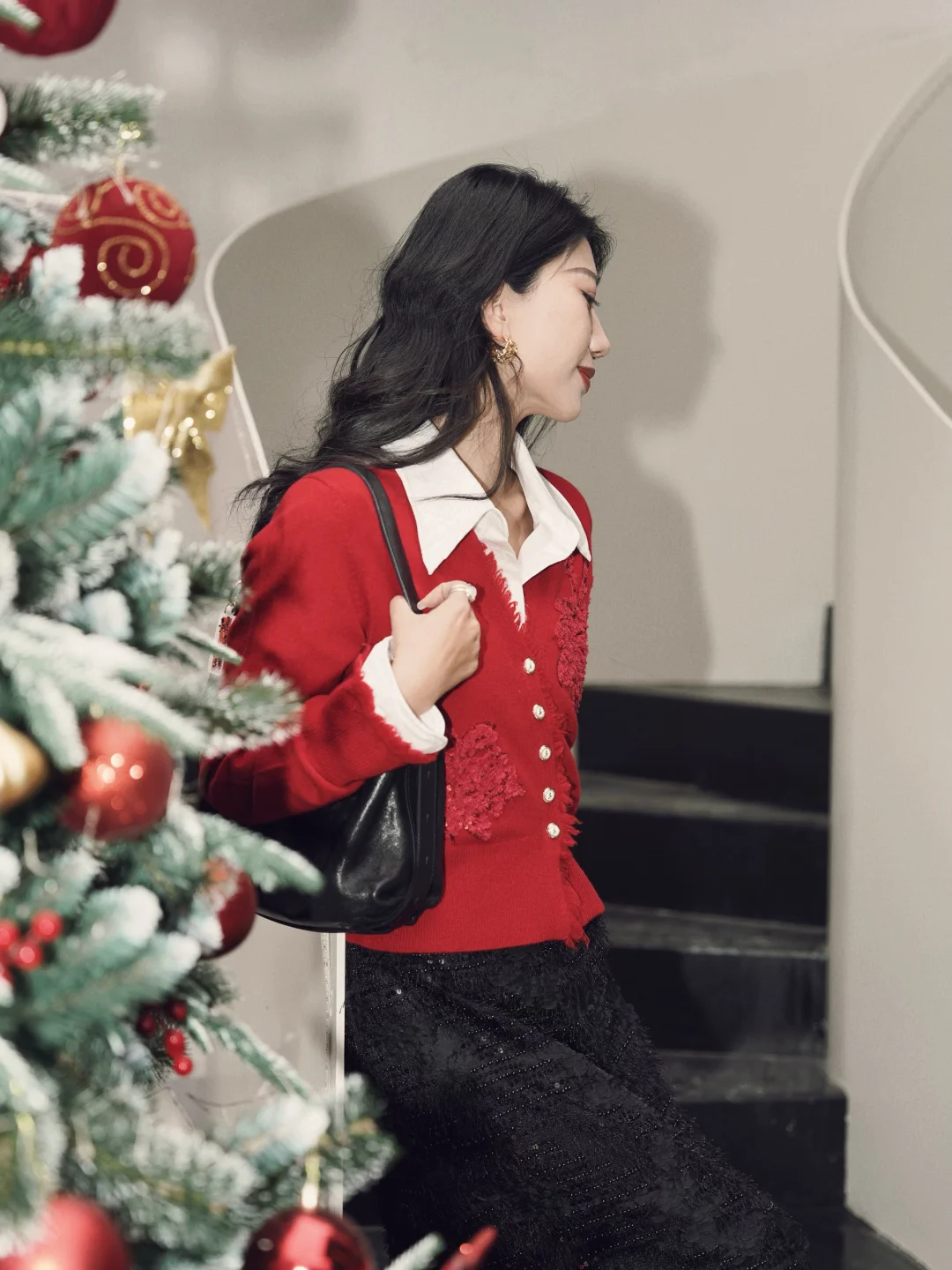 过年穿什么 气质穿搭 新年红 新年穿搭 就要红出圈 红色针织衫 精致的松弛感