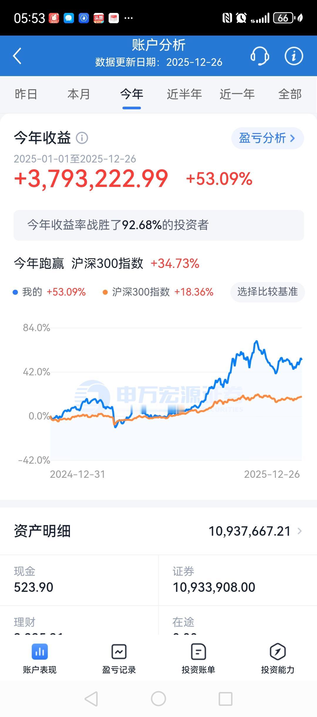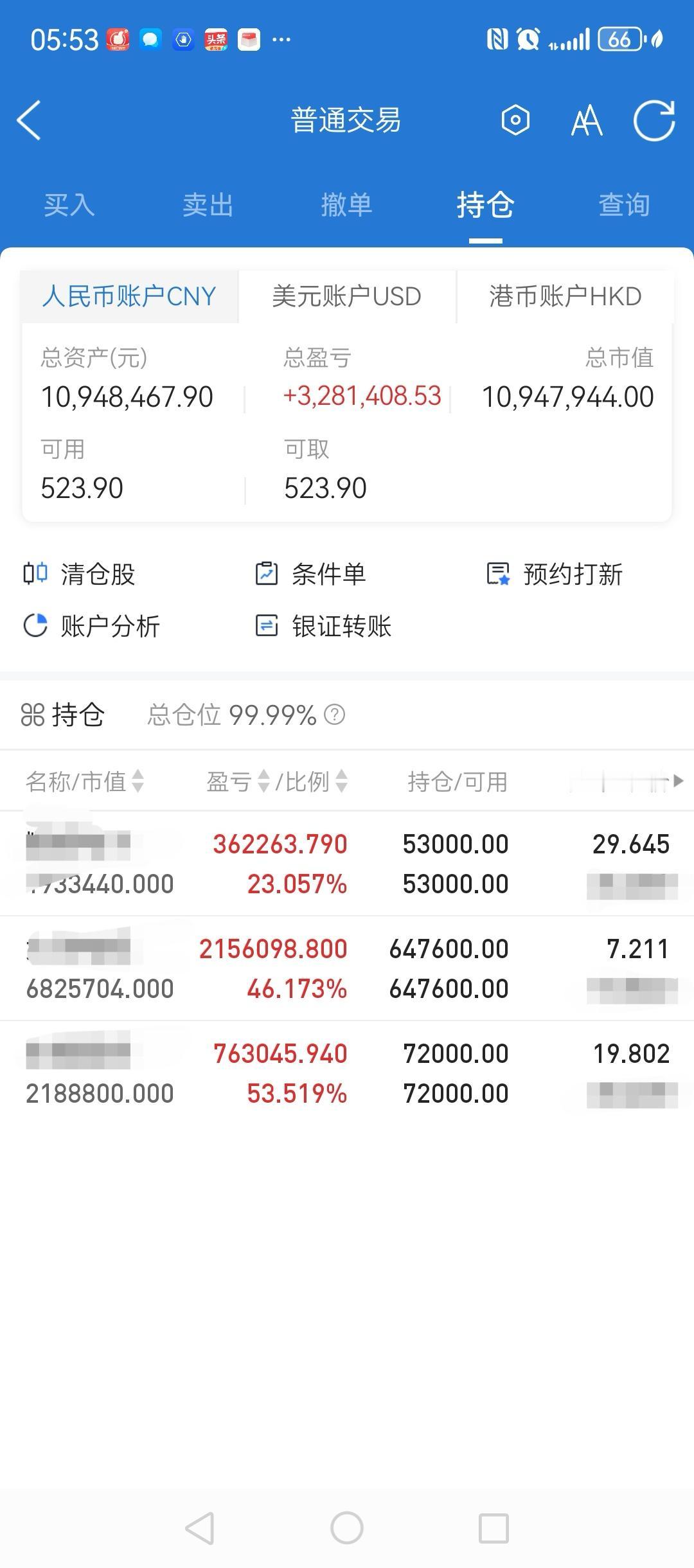 220万的本金,六年时间累计盈利接近1000万。 今天沪指9连阳,我的账户小赚,但是大部分股票还是下跌的。 账户今年的收益不算高,53%左右,但是累计收益还是非常不错的,接近400%,最高的时候一度达到450%左右。 账户个股都是科技股,属于人形机器人和电子元器件板块。 相信元旦前最后两个交易日有望迎来不错的盈利,敬请期待!
