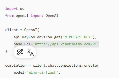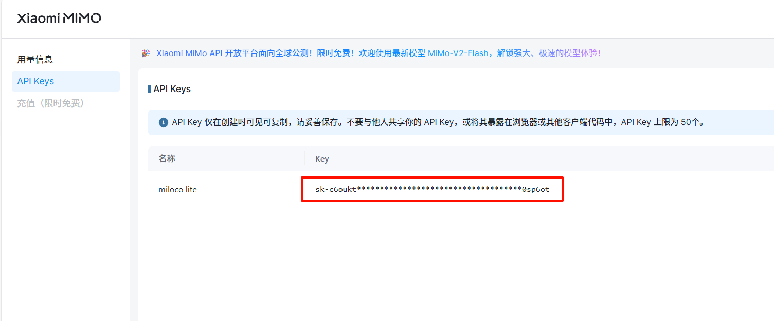 miloco能白嫖小米开源的mimo V2 Flash作为规划大模型的这不怪大家搞不明白,毕竟miloco刚开源文档写得没那么细添加云端模型的时候,base url如 图一API Key自己申请,复制就行 图二最关键的是,填模型名称。下拉列表里面没有,但是大家可以自己填啊,别填错就行模型名称:mimo-v2-flash 图三同理,任意一个开放API Key的大模型,都可以照此解决。直接去API调用文档里吧"Base URL"和"model="参数拿到,粘贴就行
