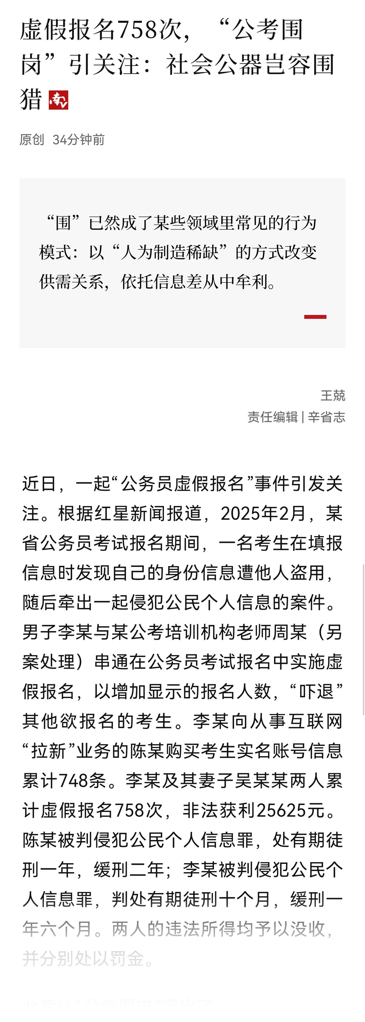 公考培训机构运作公考虚假报名,可谓不择手段。这哪里是做教育,完全就是为了利益。对于这些机构的负责人,不但要依法追究法律责任,还要实行从业禁止,应禁止终身再从事教育培训。
