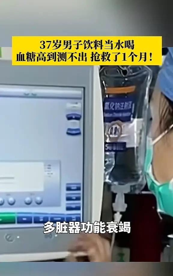 江苏,一男子长期将饮料当水喝,每天最少要喝五六瓶,结果因为身体不适就医,检查的时候,男子的血糖高到测不出,体温超过40 ℃,还出现了休克,脏器功能衰竭等症状,生命垂危,抢救了一个月!网友:还敢乱喝吗? 张先生平时几乎不喝白开水,把甜味饮料、奶茶当水喝,这个习惯已经持续了好几年。事发前几天,他开始感到异常口干、浑身乏力,但并没太在意,以为只是普通劳累。直到他突然昏迷,家人才意识到情况严重,紧急将他送医。 送到医院时,张先生的体温超过了40℃,血压极低,处于休克状态,多个脏器功能出现衰竭,血糖值竟然高到仪器都测不出来,远超糖尿病危重标准。医生诊断他患上了糖尿病高渗昏迷,并伴有酸中毒、脓毒性休克和急性肾衰竭等严重并发症。 医院迅速组织全力抢救,通过补液、降糖、保护脏器等一系列紧急治疗,张先生的生命体征才逐渐平稳。这场生死搏斗持续了整整一个月,他才最终脱离生命危险,转入普通病房时,肾功能仍在恢复中。 当人体短期摄入糖分超标,会给代谢系统带来极大负担,饮料中的糖分会被快速吸收,导致血糖急剧升高。为了将多余糖分排出,身体会产生渗透性利尿,大量水分连同电解质会通过尿液流失,引发严重脱水和电解质紊乱。血液因此变得“浓稠”,渗透压升高,身体细胞会脱水,从而引发意识模糊、昏迷等严重神经系统症状,并极大加重心脏、肾脏等器官的负担,最终可能导致多器官功能衰竭。 现在因不良饮食习惯导致严重健康问题的年轻人越来越多,含糖饮料虽然口感诱人,但背后隐藏着肥胖、痛风、糖尿病、心血管疾病的长期风险。建议大家喝白开水,白开水才是最健康、最直接的补水选择。 希望大家能引以为戒,养成良好的饮水习惯,就是守护健康的第一道防线。 各位读者你们怎么看?欢迎在评论区讨论。
