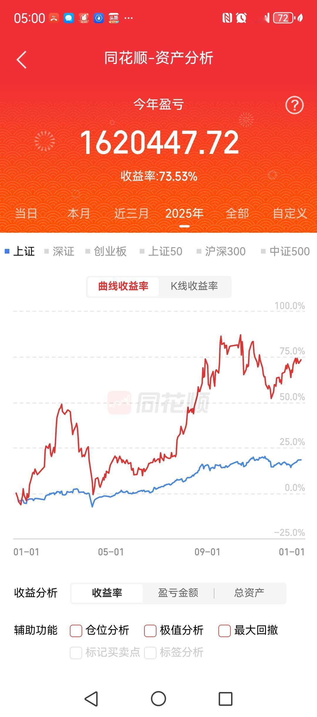 六年时间,1200%左右的收益是如何一步步实现的呢? 接下来,我慢慢复盘。 2019年二月二十一号买入生益科技,8月27号卖掉。2019年9月5号买入603118共进股份,2020年3月16号卖掉。2020年5月19号买入东方电缆, 2020年8月11号卖掉。2021年3月12号买入沃尔核材,2024年10月23号卖掉。2021年6月25号买入通富微电,2024年11月7号卖掉。2024年10月30号买入水晶光电,2025年9月15号卖掉。2024年12月6号再次买入生益科技,2025年1月21号卖掉。 2025年,除了上述的两次卖出之后,重新买入股票后仓位一直保持满仓,持有至今。他们都是科技股,一只属于人形机器人板块,另外一只是电子元器件板块。其中的机器人个股持有时间已经一年有余,目前收益在80%左右。 2020年8月11号卖出东方电缆之后,有一段时间是不赚钱的,出现了将近35%左右的回撤。 这过程当中,曾经买入共进股份,建投能源,银信科技和格林美,买卖不当,出现了较大亏损。 否则,这6年的收益可能就不是1200%,而是2200%了。 吃一堑,长一智。从2021年9月份之后,账户上就再没有出现过亏损的操作。 所以,从2021年9月份开始,稳健获利,复利加速。 欲穷千里目,更上一层楼!会当凌绝顶,一览众山小!