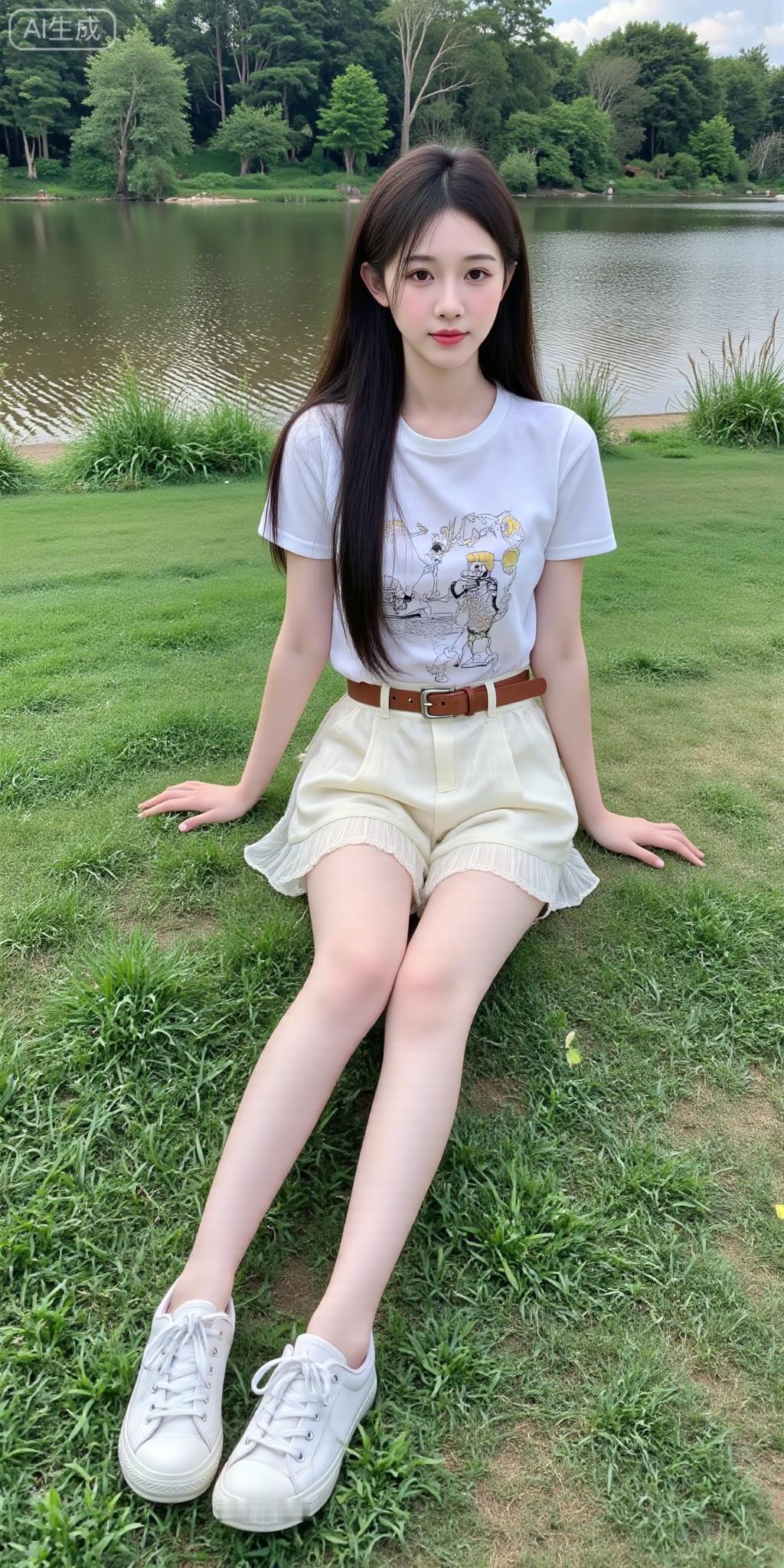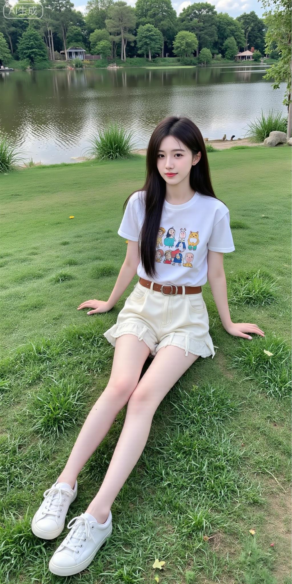 湖边草地的清甜穿搭好戳 白T印着卡通图案,搭奶黄荷叶边短裤,棕皮带一收腰,清爽又带点甜~ 蹲在湖边草地上,风裹着绿意,连裙摆的褶皱都在冒夏日氛围,这就是松弛感甜妹吧!夏的小清新穿搭
