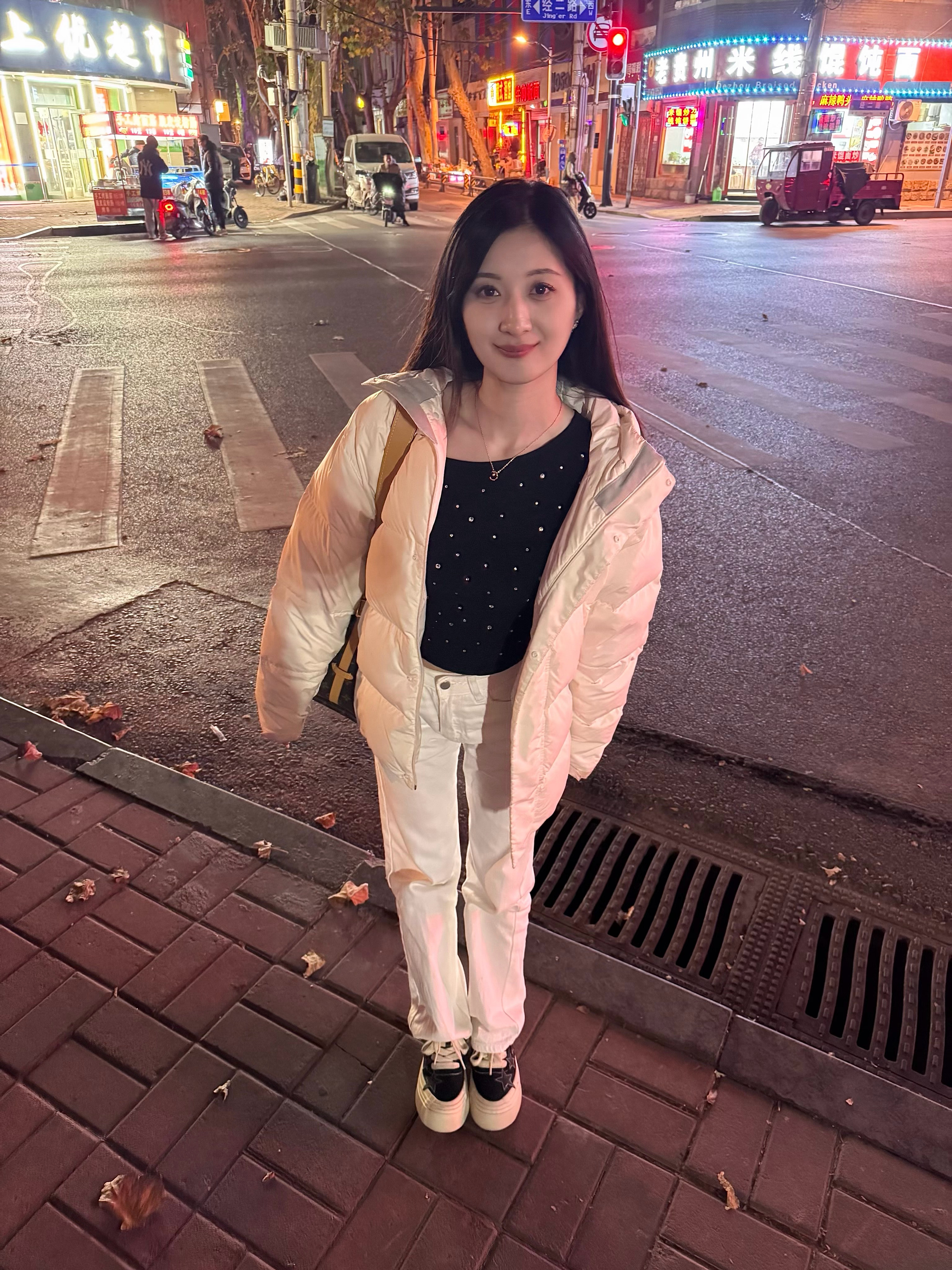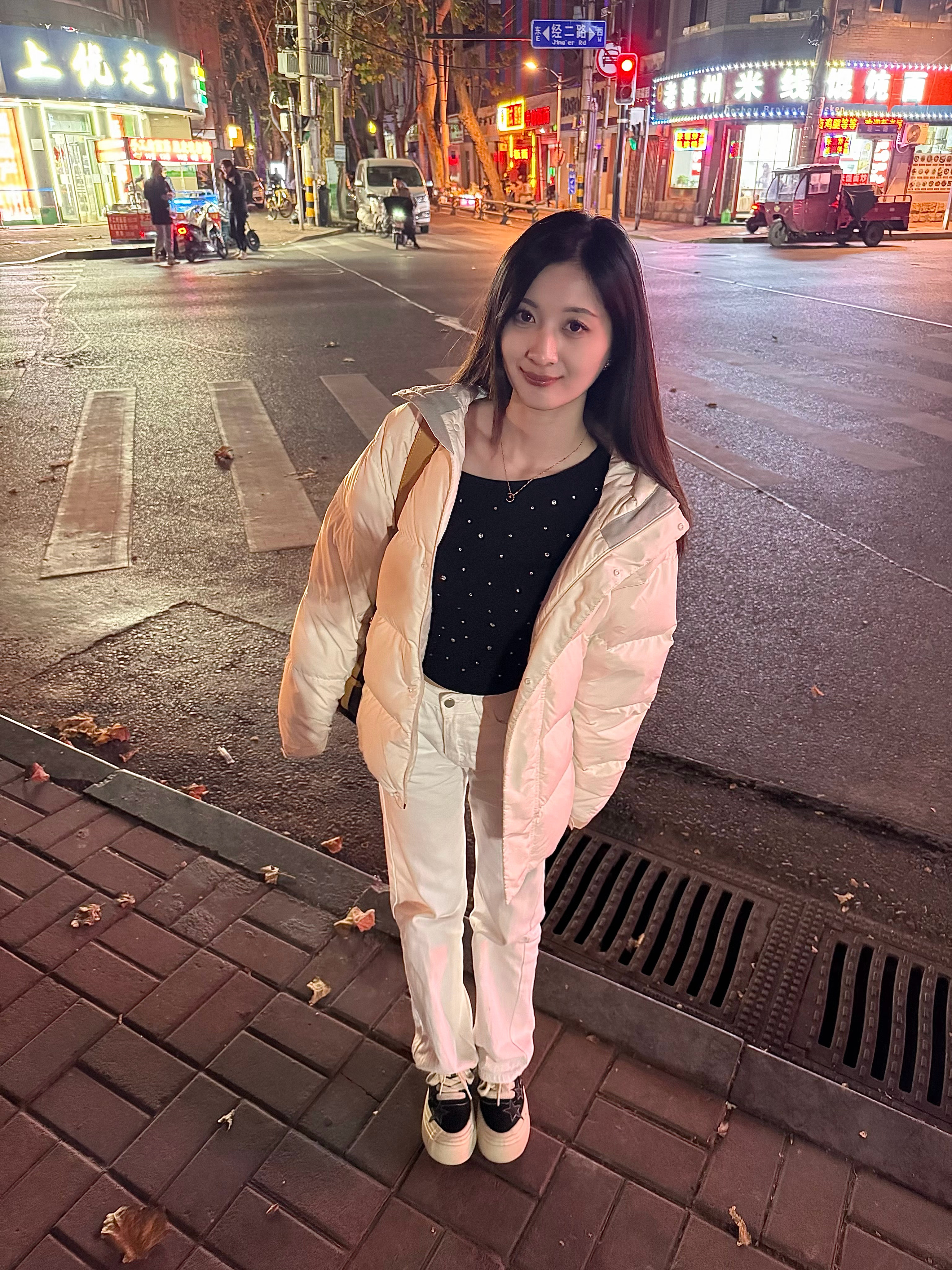 雪天街头的奶白甜妹好戳 毛绒外套裹着奶杏内搭,格纹短裙配白靴,软乎乎的全白穿