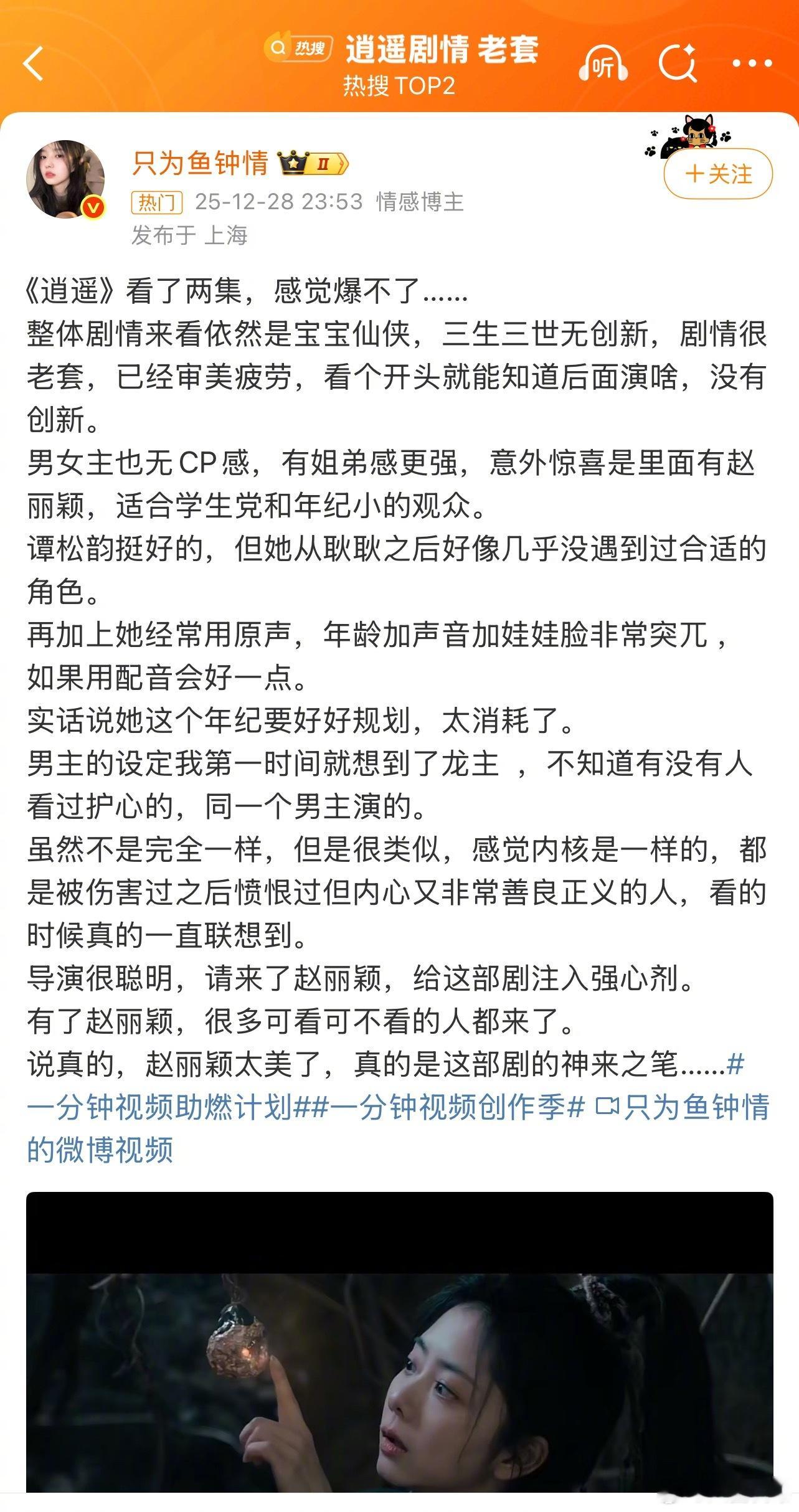 谭松韵、侯明昊《逍遥》剧情被说幼稚老套,还有说像《犬夜叉》,看过的来说说这部剧到底咋样逍遥剧情 老套逍遥 犬夜叉