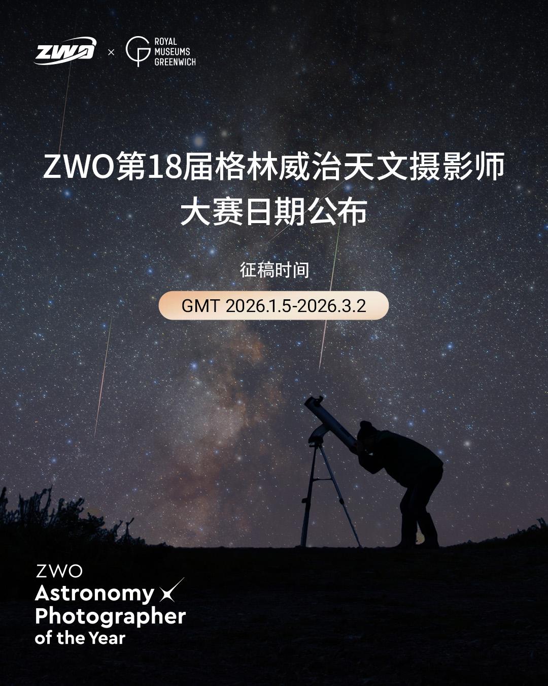 ⏰ZWO第18届格林威治天文摄影师大赛将于2026年1月5日正式开启作...