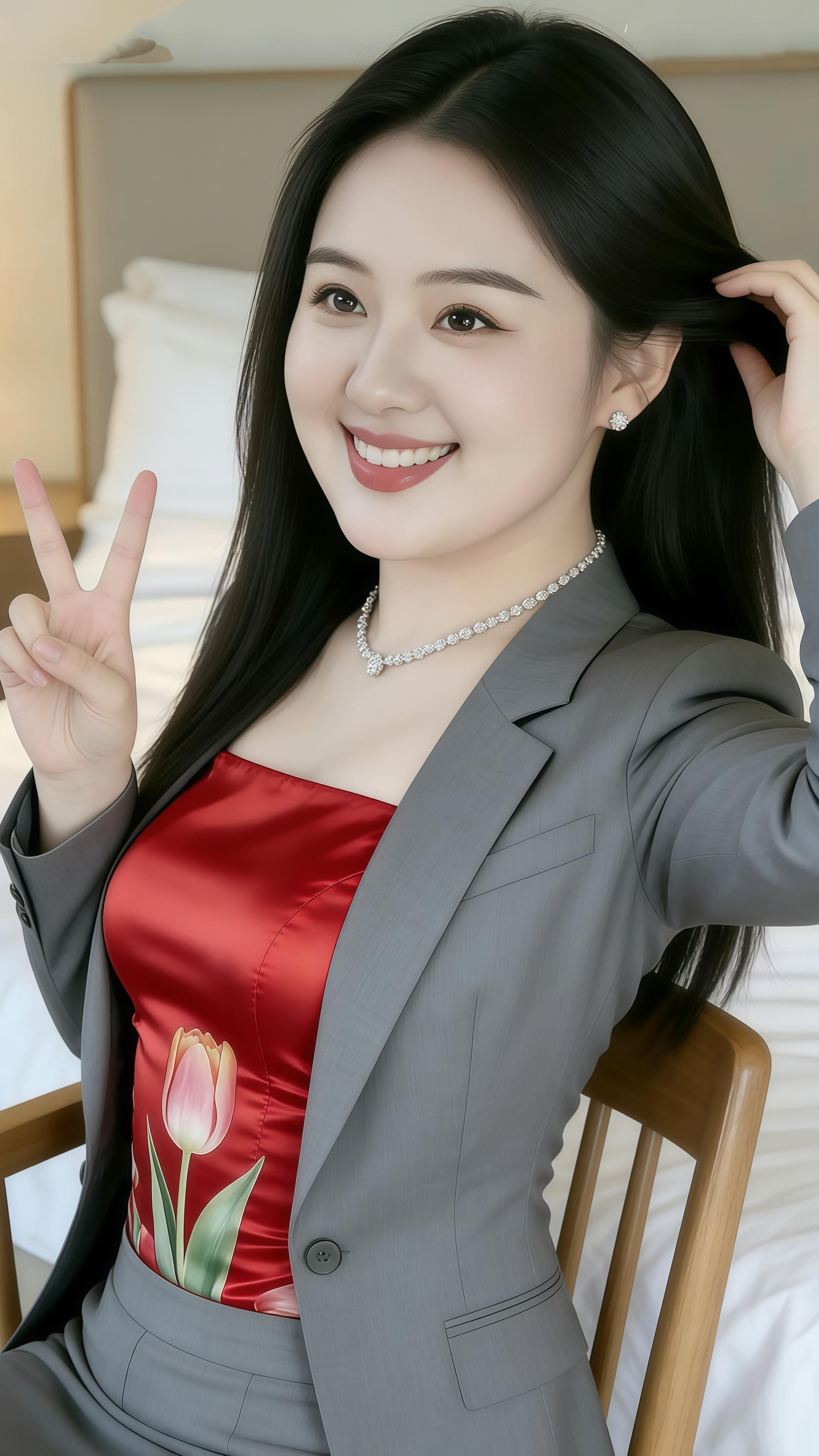 职业装还真是值得点赞的服装,连这种身材穿上职业装都不丑。