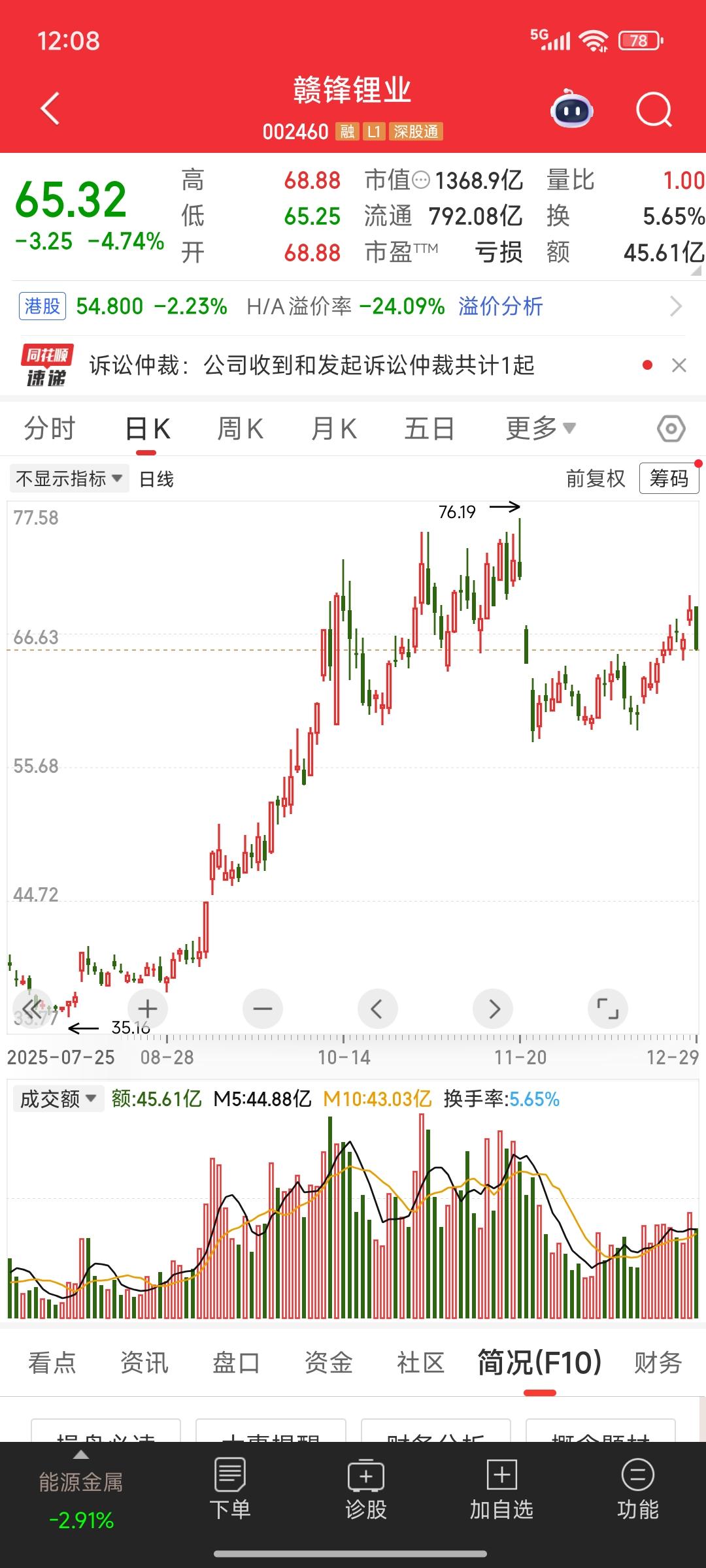 人倒霉起来喝凉水都塞牙 赣锋锂业出利空了,33.3万股民要失眠了 赣锋锂业:公司涉嫌内幕交易罪单位犯罪 收到宜春市公安局移送起诉告知书。 目前股价处于高位,从底部算起来,涨幅在一倍以上。所以很多散户觉得,这要是跌起来,估计要亏麻了。 理性看待,这个利空比较中性,对公司其实没啥影响。比起财务造假,这个算是小巫见大巫了。不过主力有可能,借着利空出货也说不定。