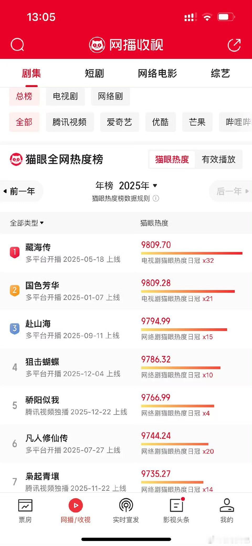 ie姐姐吹了半年的猫眼,猫眼官方发的《藏海传》2025年年度最热剧集,ie姐姐要