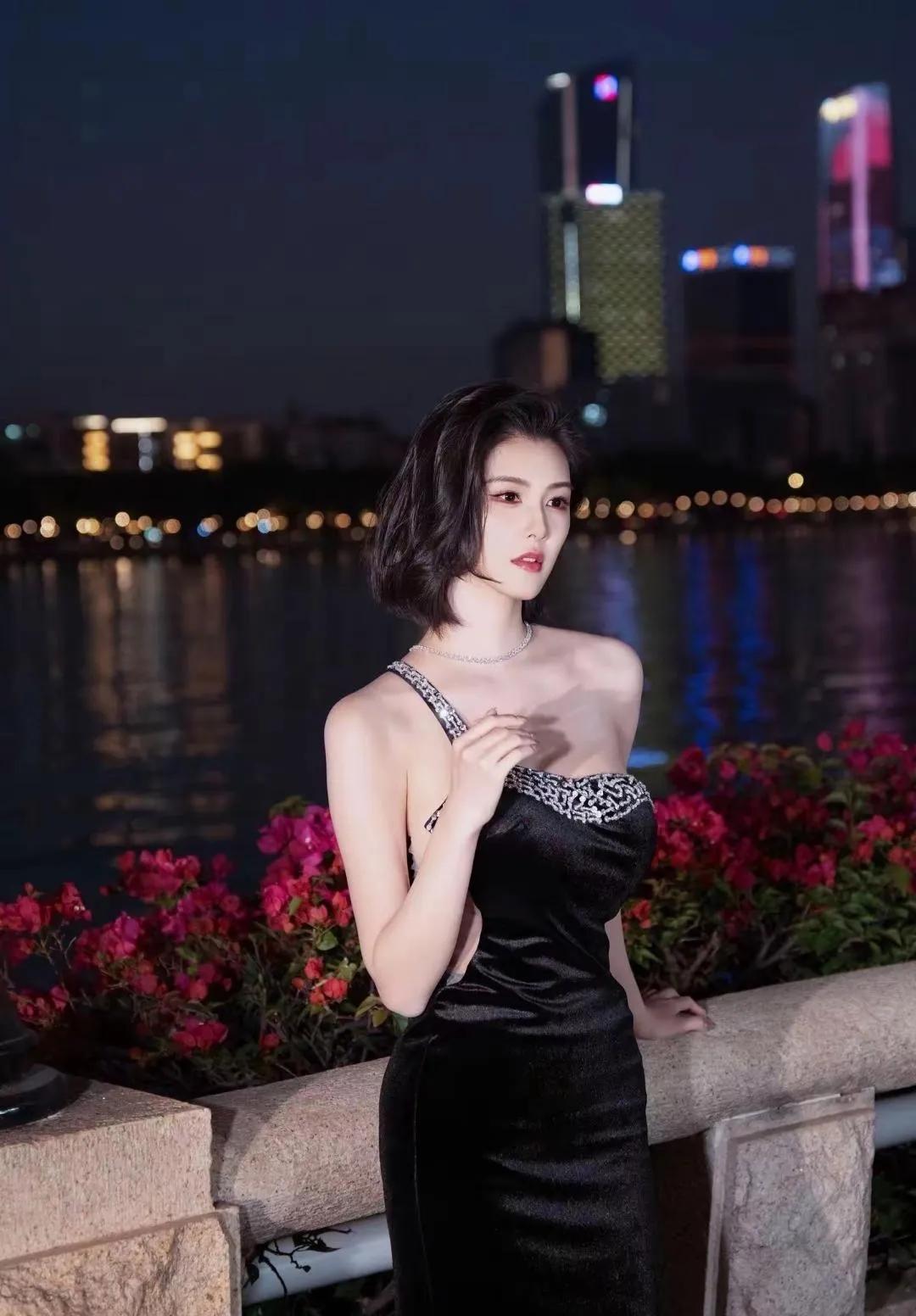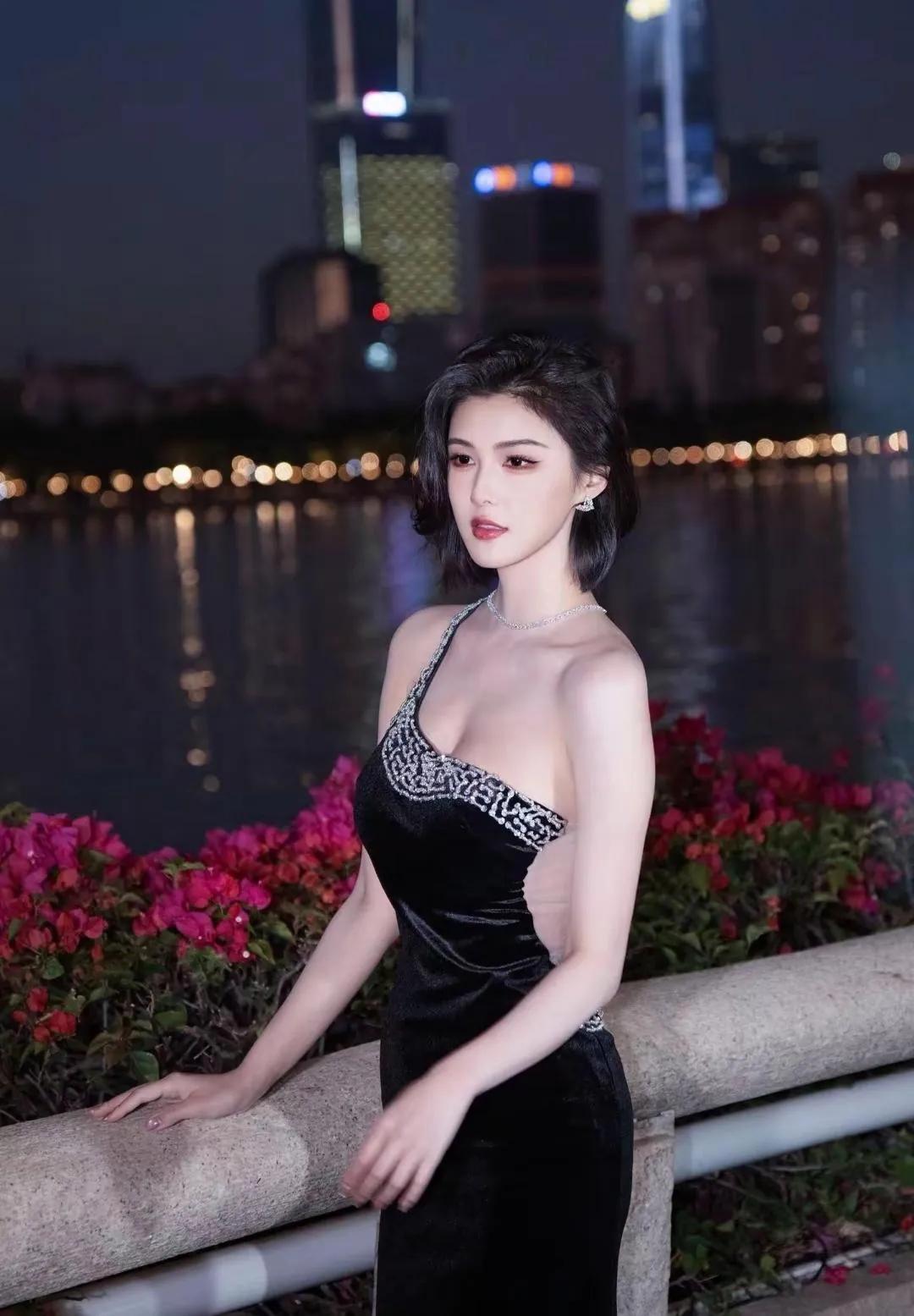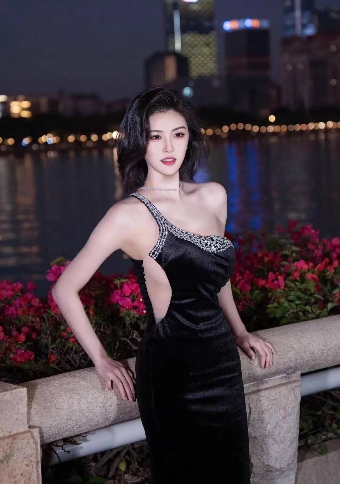 程儿黑裙造型鲨疯了!夜色里的明艳杀场 夜色才是程儿的主场!一袭黑色丝绒斜肩礼裙出镜,肌肤在黑裙映衬下更显胜雪,腰侧镂空设计利落勾勒出曼妙身段,短发配红唇的冷艳气场直接拉满。 江畔夜景作衬,她往栏杆边一站,每一个抬眸、侧身的瞬间都透着惊艳,车展生图能打出这水准,难怪成了全场焦点~程儿 车模程儿