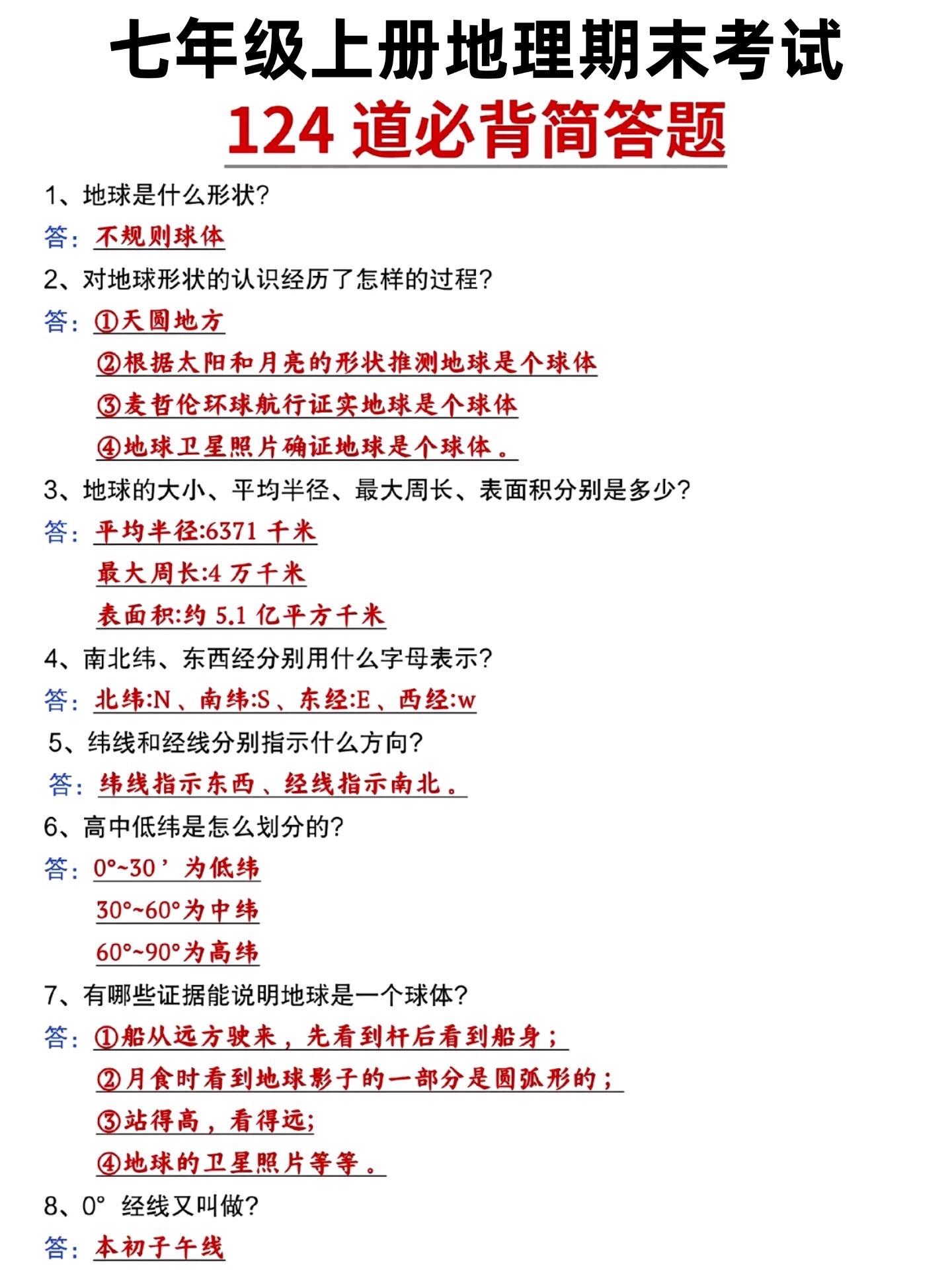 七年级上册期末复习清单如果复习一网打尽。七年级上册期末复习,老师给大家...