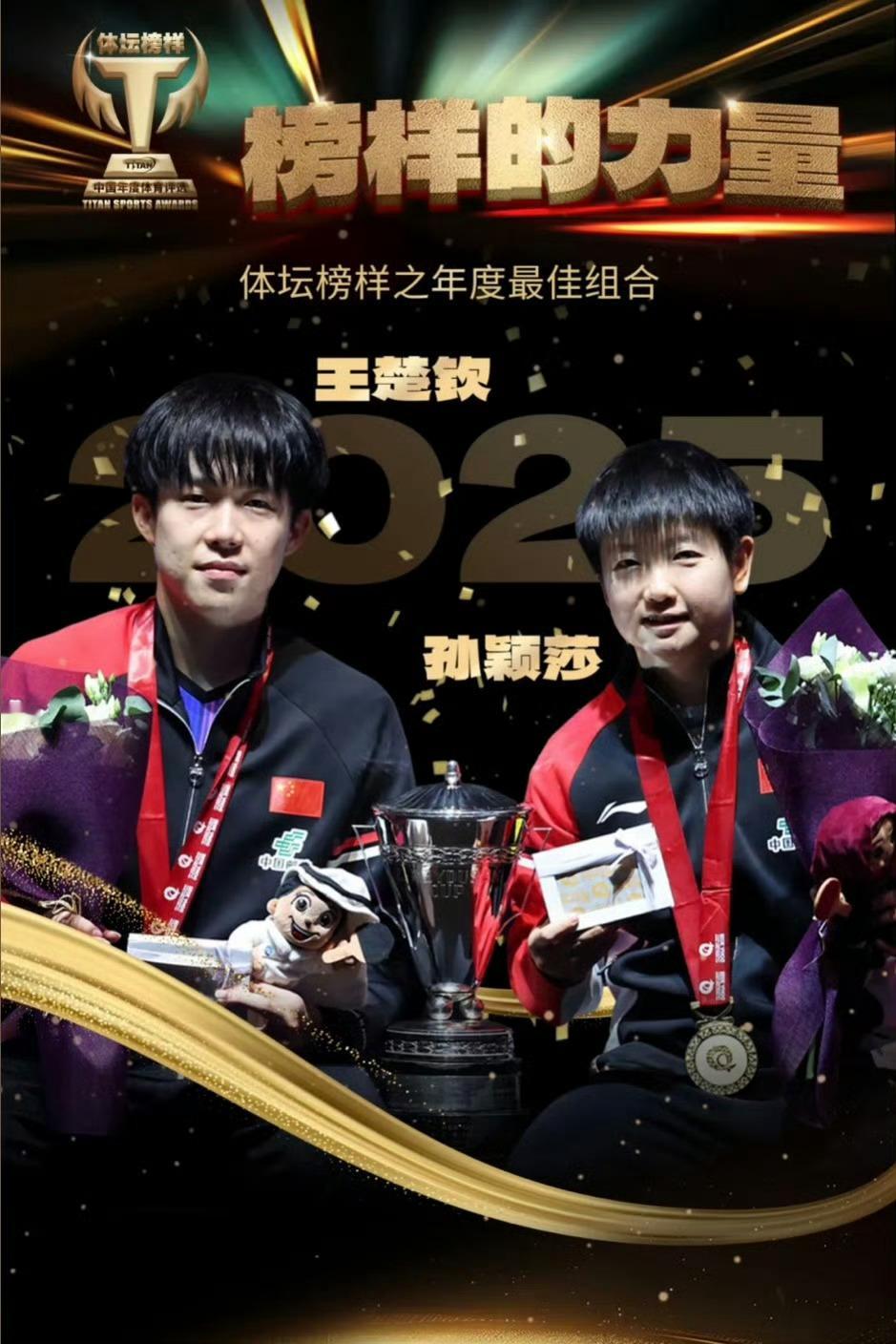 所有的付出、所有的努力,最终都会绕个大圈回报给你自己。 体坛榜样之年度最佳男运动员。 混双,体坛榜样之年度最佳组合。