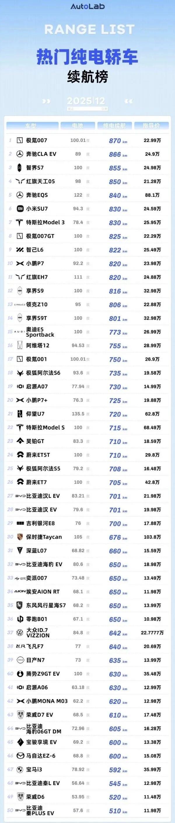 热门车型续航榜出炉,广大车友们里程数据靠谱吗?欢迎留言评论。