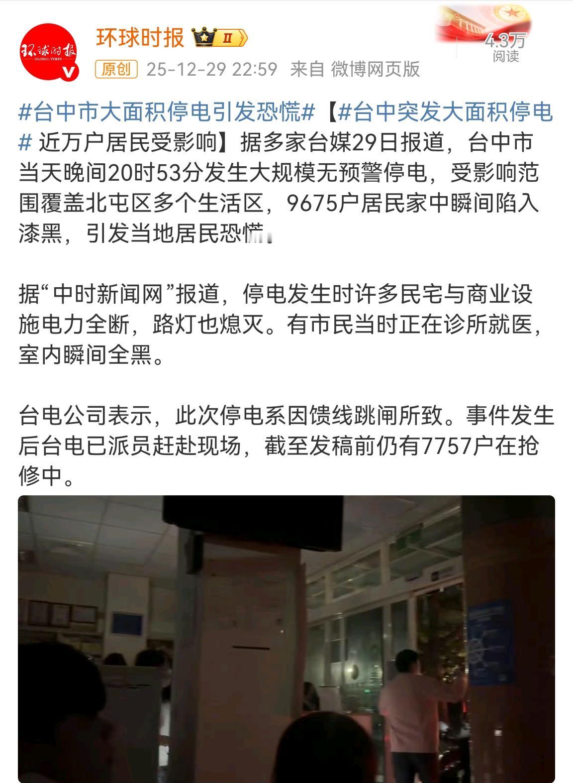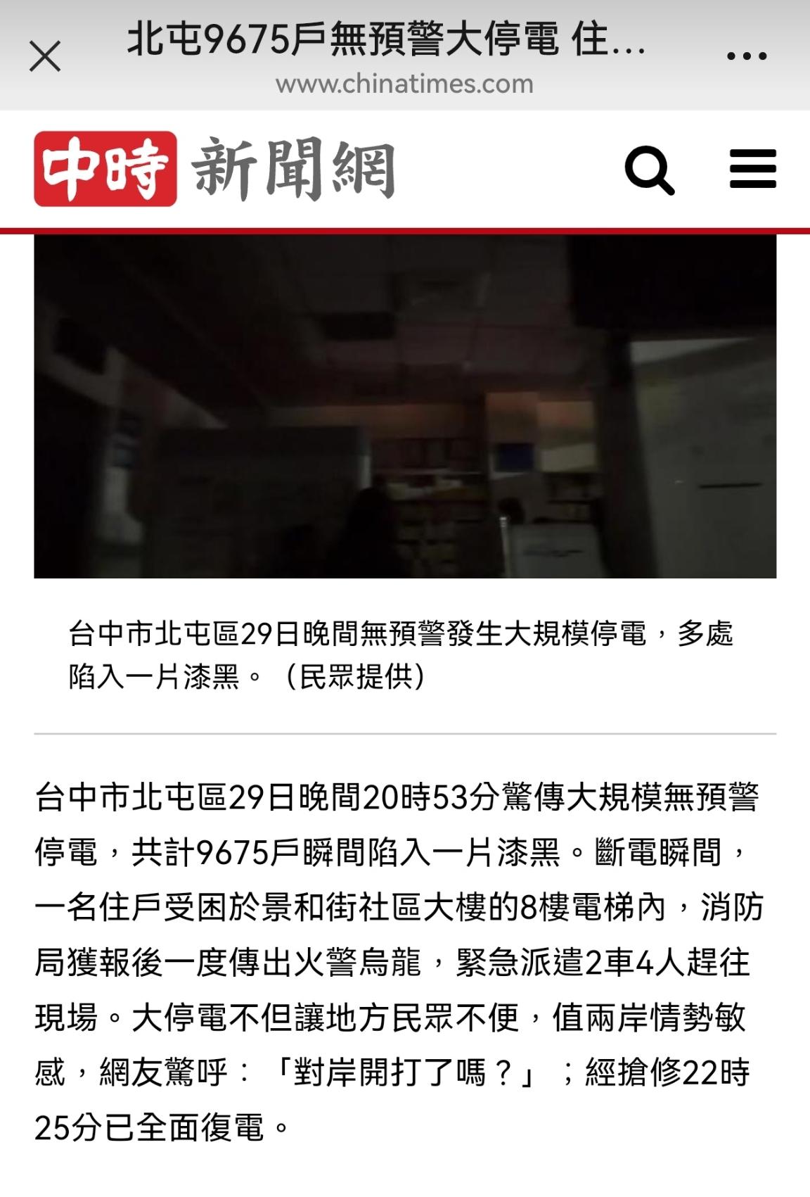 就问你刺不刺激?我们正在围岛演习,岛内突然无预警大面积断电一片黑暗。 岛内网友一片惊呼“这么快就登陆了?” 昨晚夜里9点左右,突然一片漆黑,大片生活区无预警断电,民众恐慌情绪达到高峰。 岛内网友纷纷吐槽:本来就够紧张了,千万别自己加戏了。 最后证实是线路老化造成了。 看来岛内的基础设施就他们的人一样,都到了必须要改变的时候了。