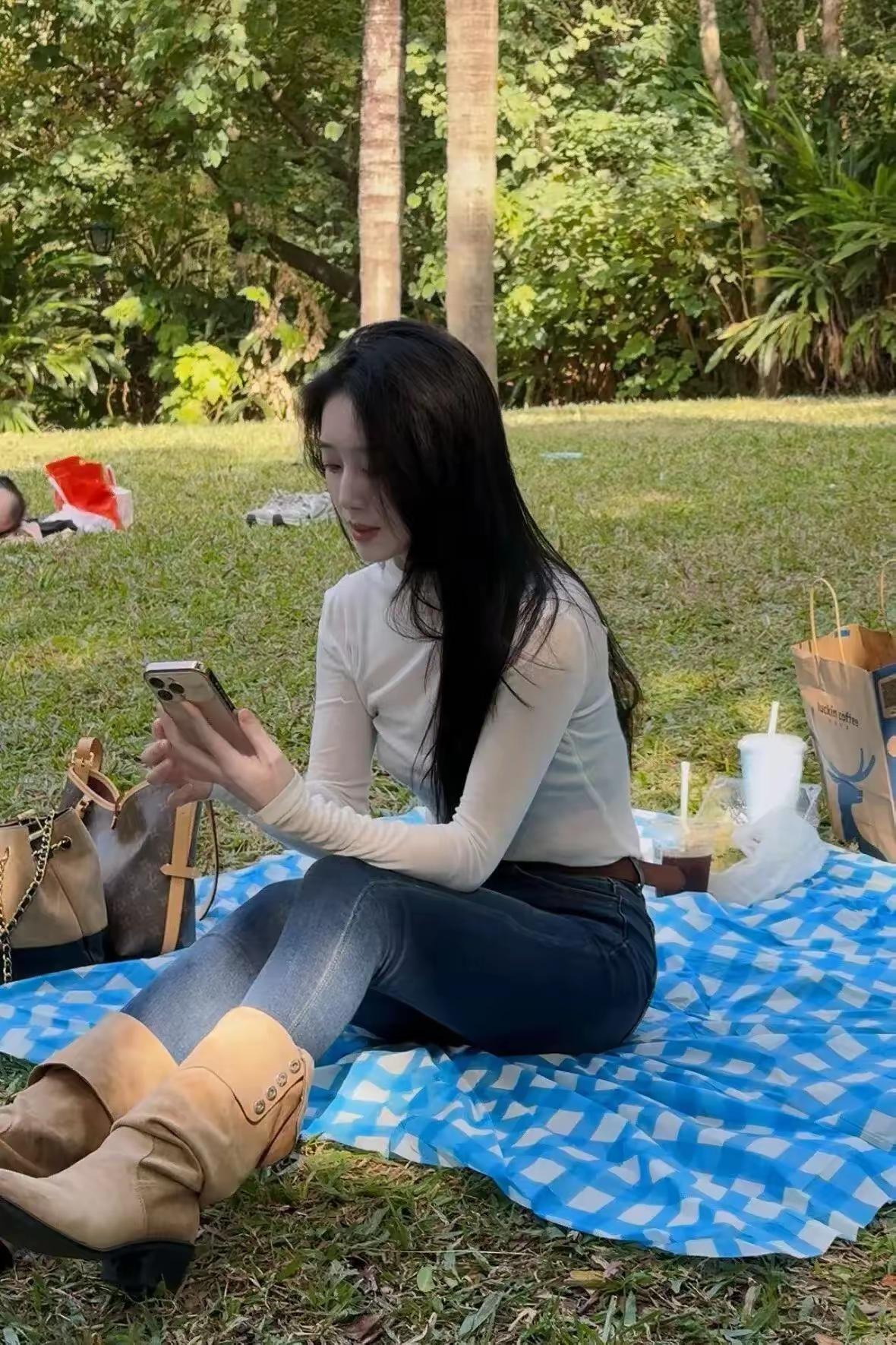 《春野里的明色轻暖》柳丝缠裹着软风,把春的气息揉进公园的草坪。她立在晴光里