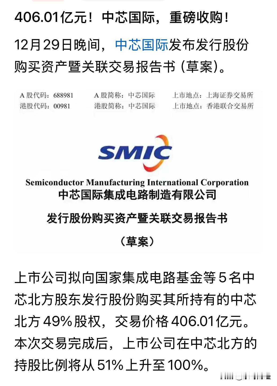 会大涨吗,迎重大利好。 中芯国际收购中芯北方49%的股权,交易价格406.1亿元,实现100%的控股,增厚上市的净利润。 然后转身又协同电路基金等向中芯南方77.78亿美元。 半导体代工及其产业链至关重要,这是要共同协同做大做强中芯国际规模的重大举措呀。 乐呀财经