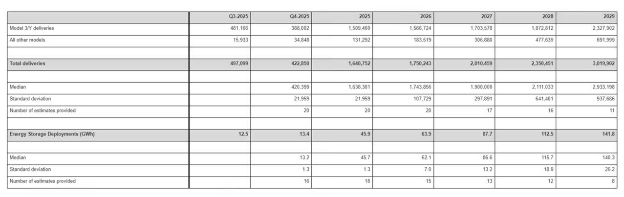 特斯拉公开2025 年第四季度交付量的市场中位预期值为 420,399 辆,均值预期则为 422,850 辆。 近三年特斯拉交付量 2023 年:181 万辆 2024 年:179 万辆 2025 年:164 万辆(预计)