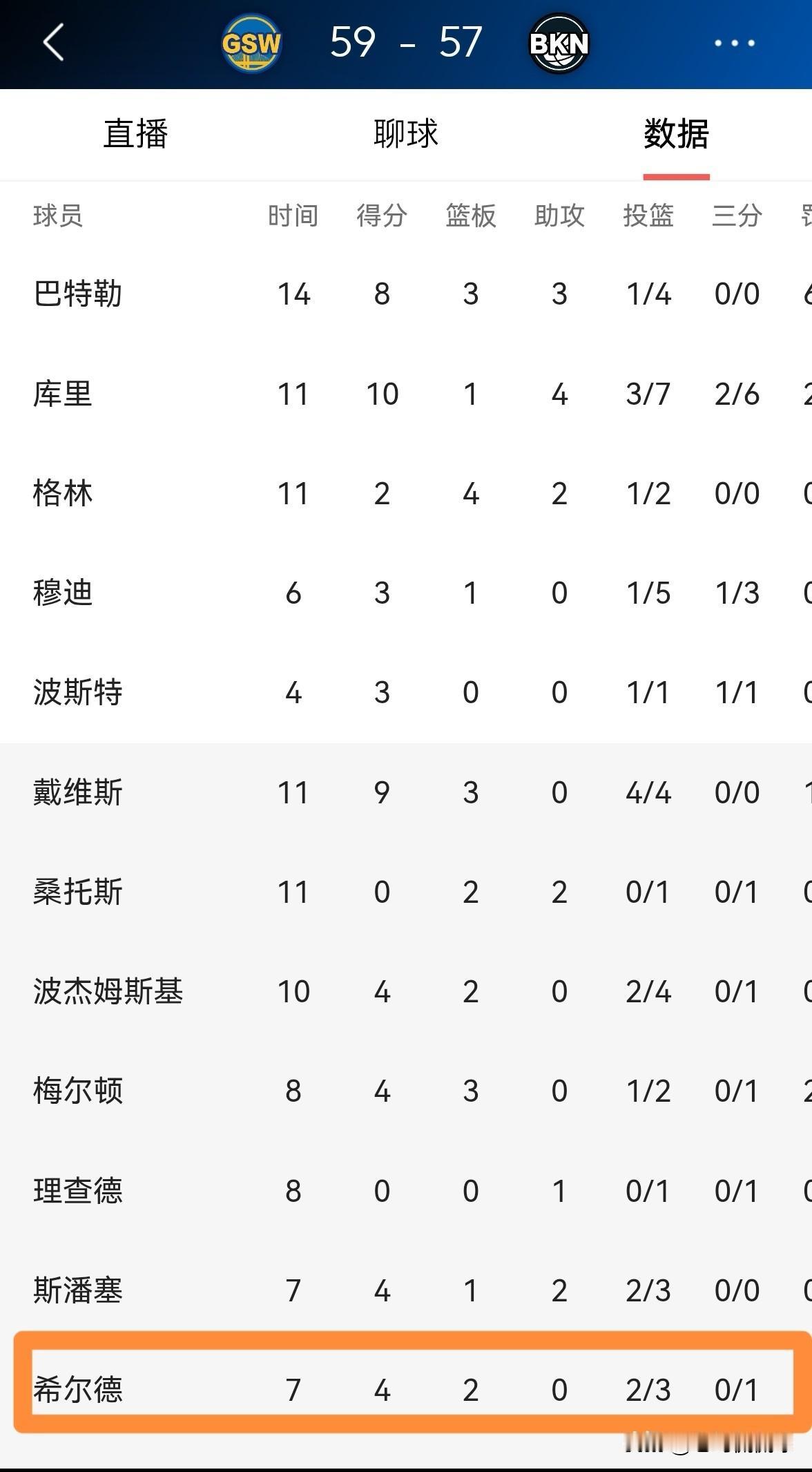 勇士神射手希尔德终于活过来了!在今天勇士客场挑战篮网的比赛中,目前双方的上半场比赛已经结束,勇士以59:57领先对手。在前两节比赛中,希尔德替补出战7分钟,投篮3中2得到4分2篮板1盖帽,他的场上正负值为+1。 在经历了一段低谷期之后希尔德终于活过来了,今天的希尔德在场上充满了活力,他在攻防两端都像打了鸡血一样。