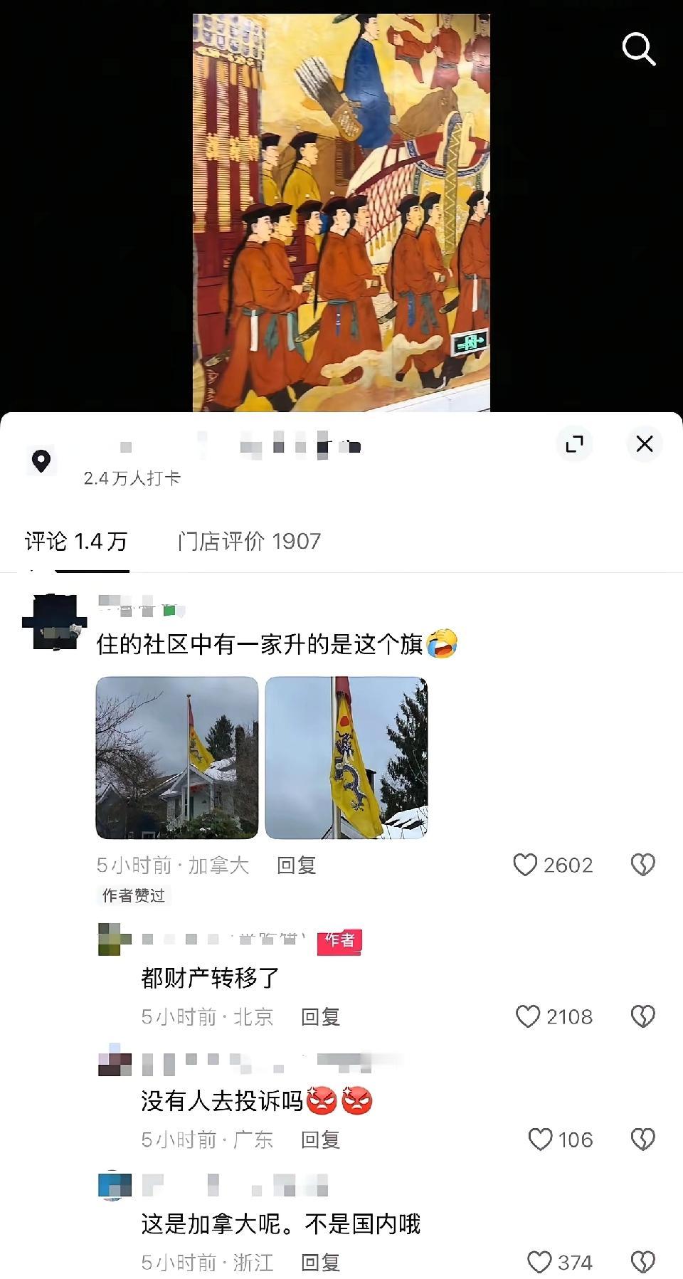 在加拿大,有户人家升起了一面满清国旗。 有网友直言,这是满清余孽,把国内财产润出去了,在国外潇洒度日。 有人翻出清末的屈辱历史,痛斥这种行为是对先辈的不敬;也有人揣测这户人家的来历,猜测他们是不是借着历史噱头博眼球,或是真的抱着不合时宜的旧梦?满清灭亡 满清恶行 满清复辟 满清崛起