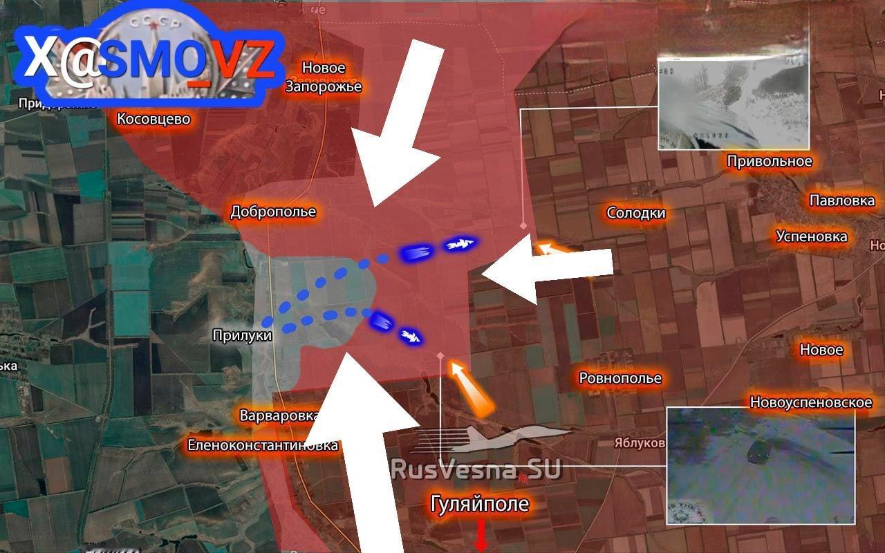 乌克兰武装部队在古利亚伊波列方向发起反攻,投入大量装甲车辆 。 敌军在瓦尔瓦里夫卡东北部发动大规模机械化进攻。俄军 部署了大量重型装备,遭到俄军火力反击。 “东方”旅的无人机操作员摧毁了大量敌军装备。部分作战车辆搭载登陆部队登陆,该部队也遭到攻击。