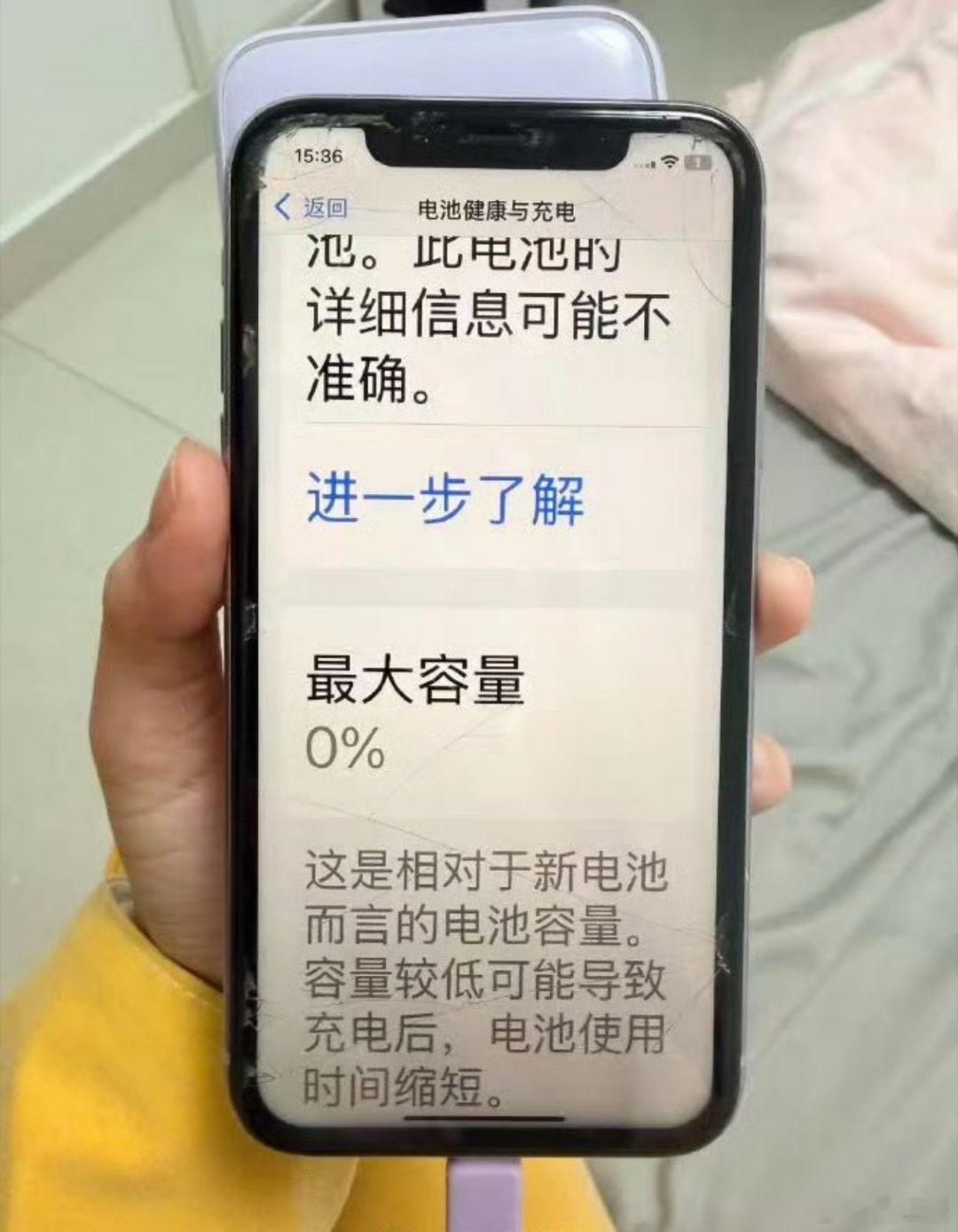 苹果客服回应电池健康度用到0%这大概率是电池芯片出问题了,按iPhone的电池电池健康度逻辑来说0%都完全用不了,一般电池健康度下降到80%以下就建议更换电池了。